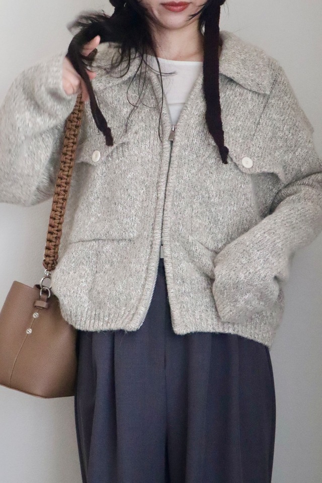 Melange knit zip blouson