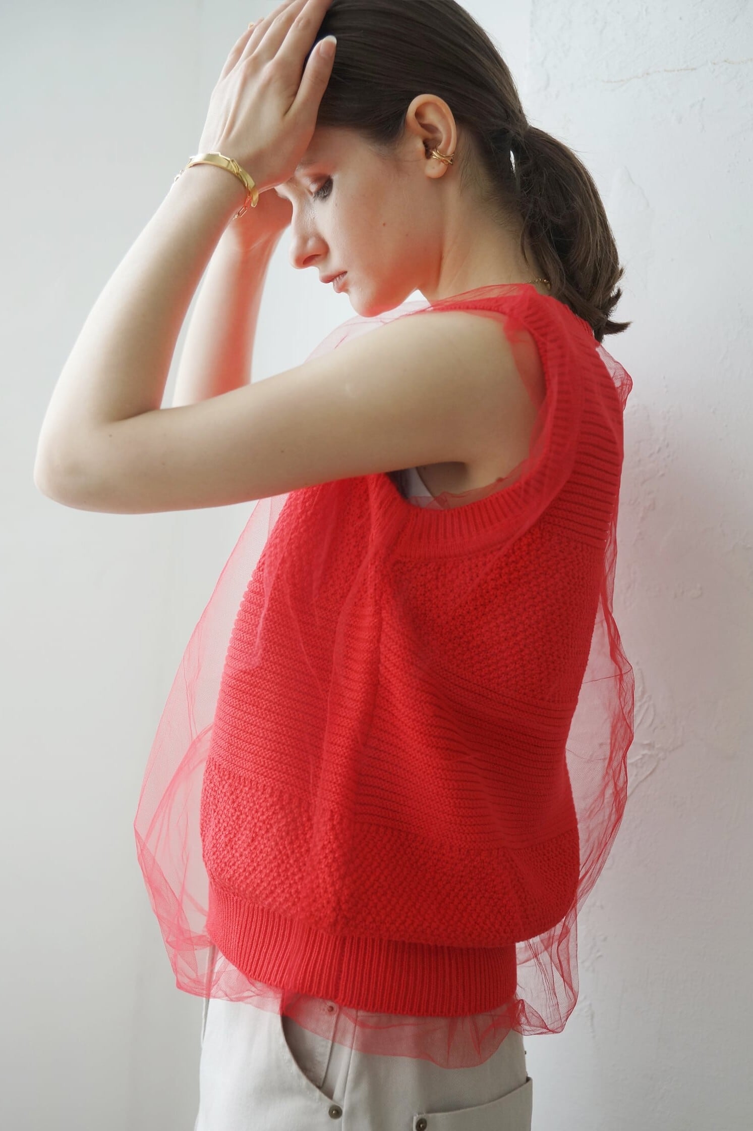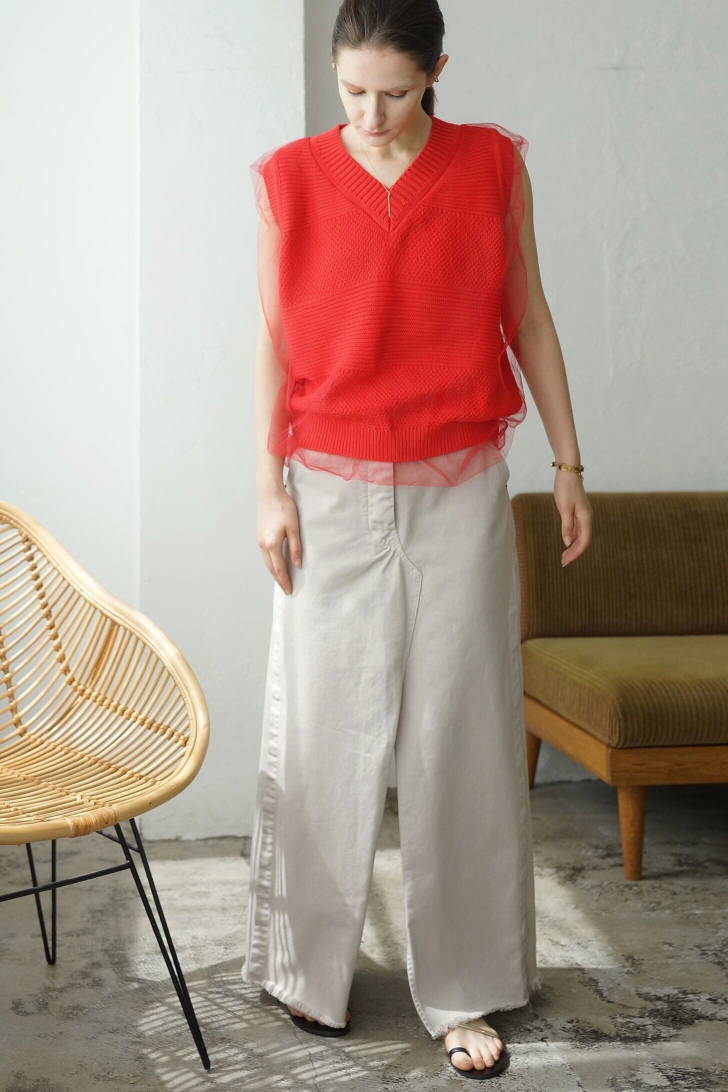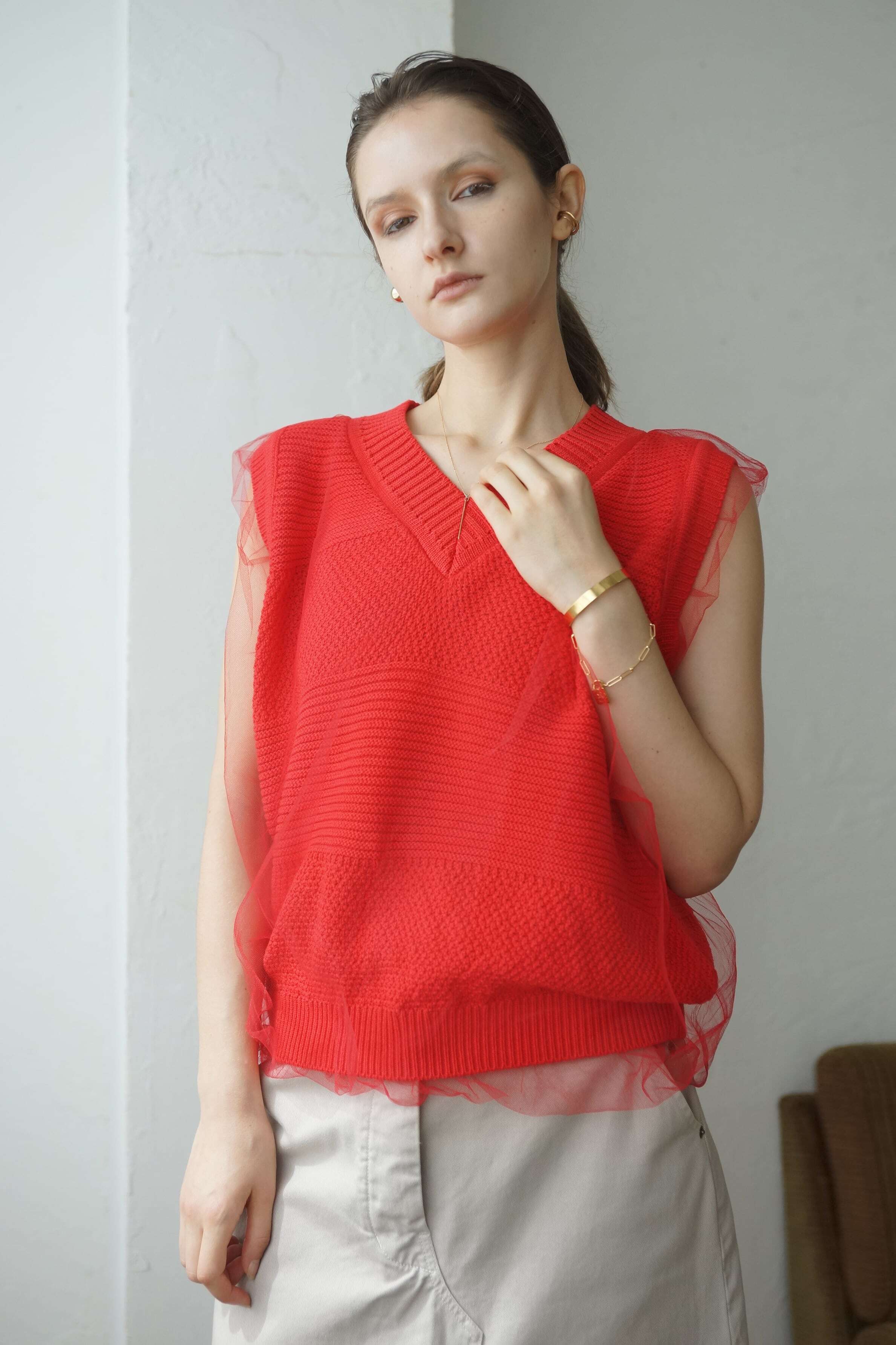 EN'DAY tulle layer V neck vest