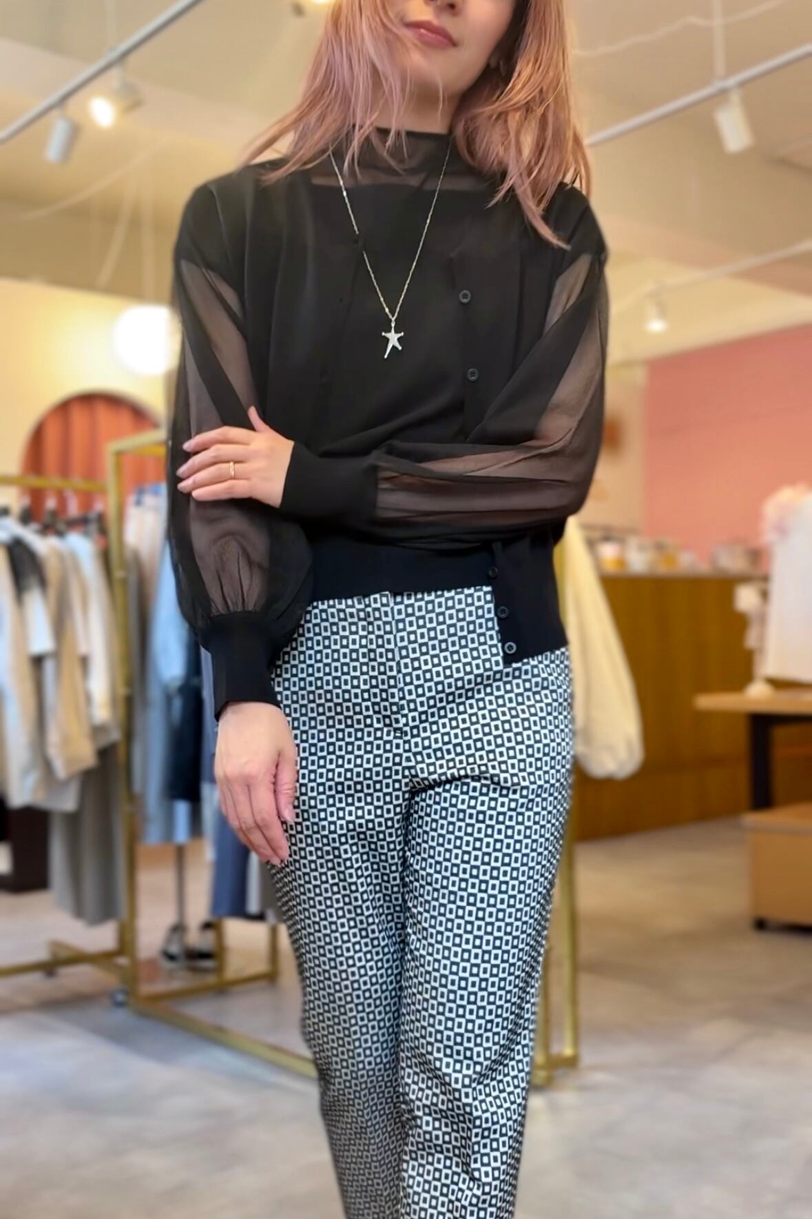 袖・前デコルテのみシアー切替になっており、夏の日除け・クーラー対策にも羽織りやすくオススメです。