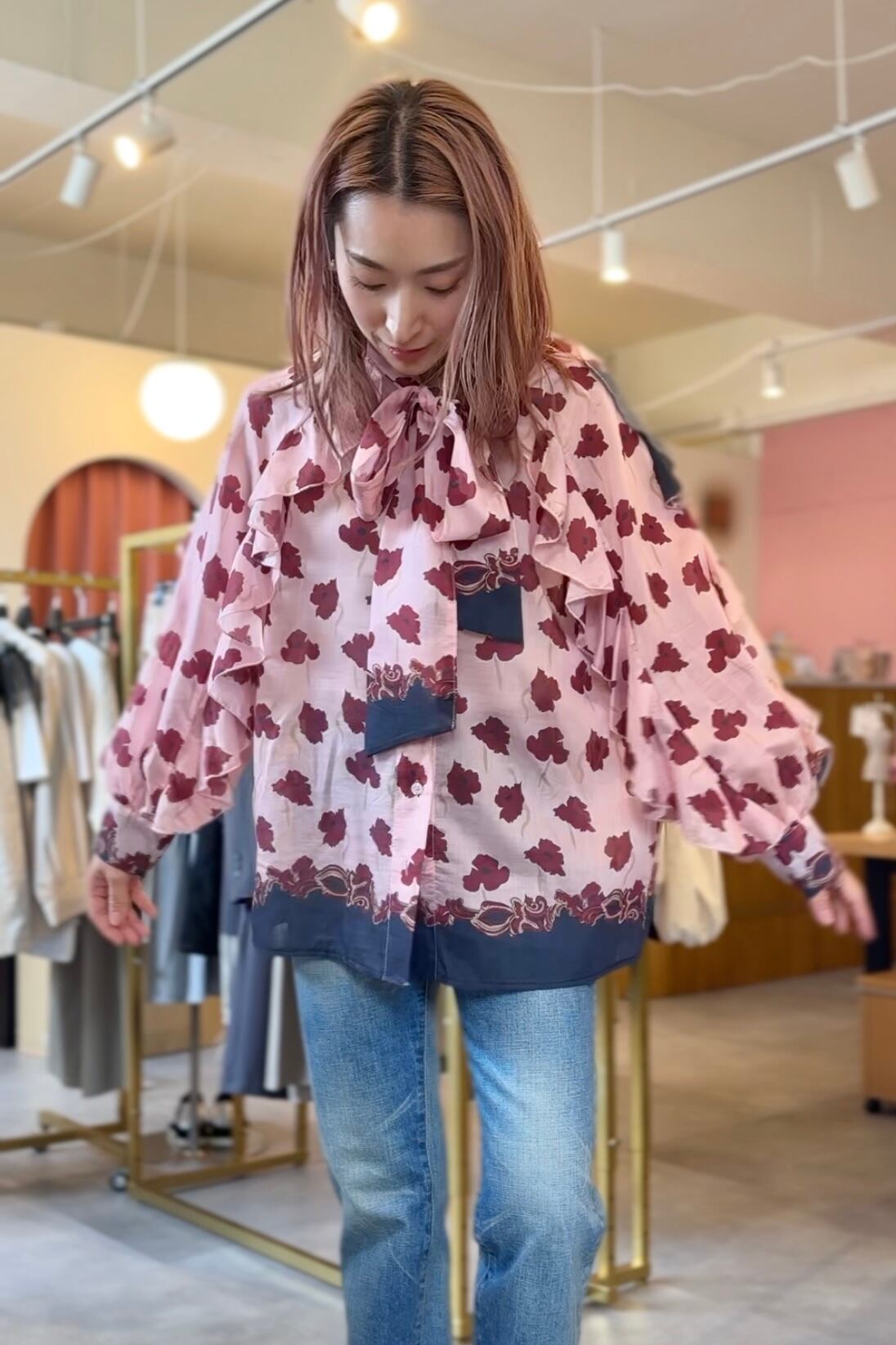 イタリア買い付けのブラウスは、その柄も フリルも、ときめきを凝縮した1枚!