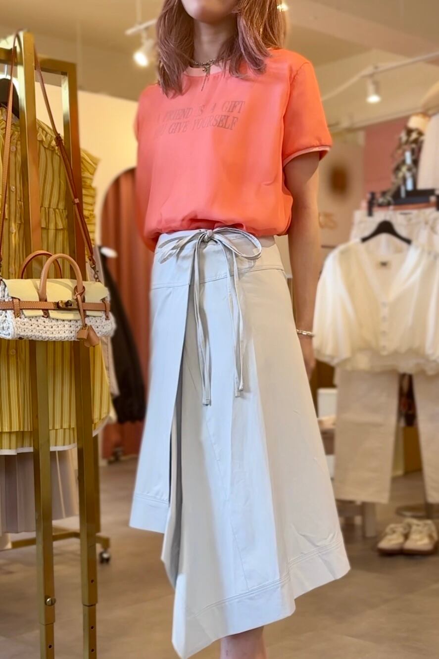 ロゴTシャツの上にシアーなシフォン素材を重ねた、バルーンシルエットのtops。