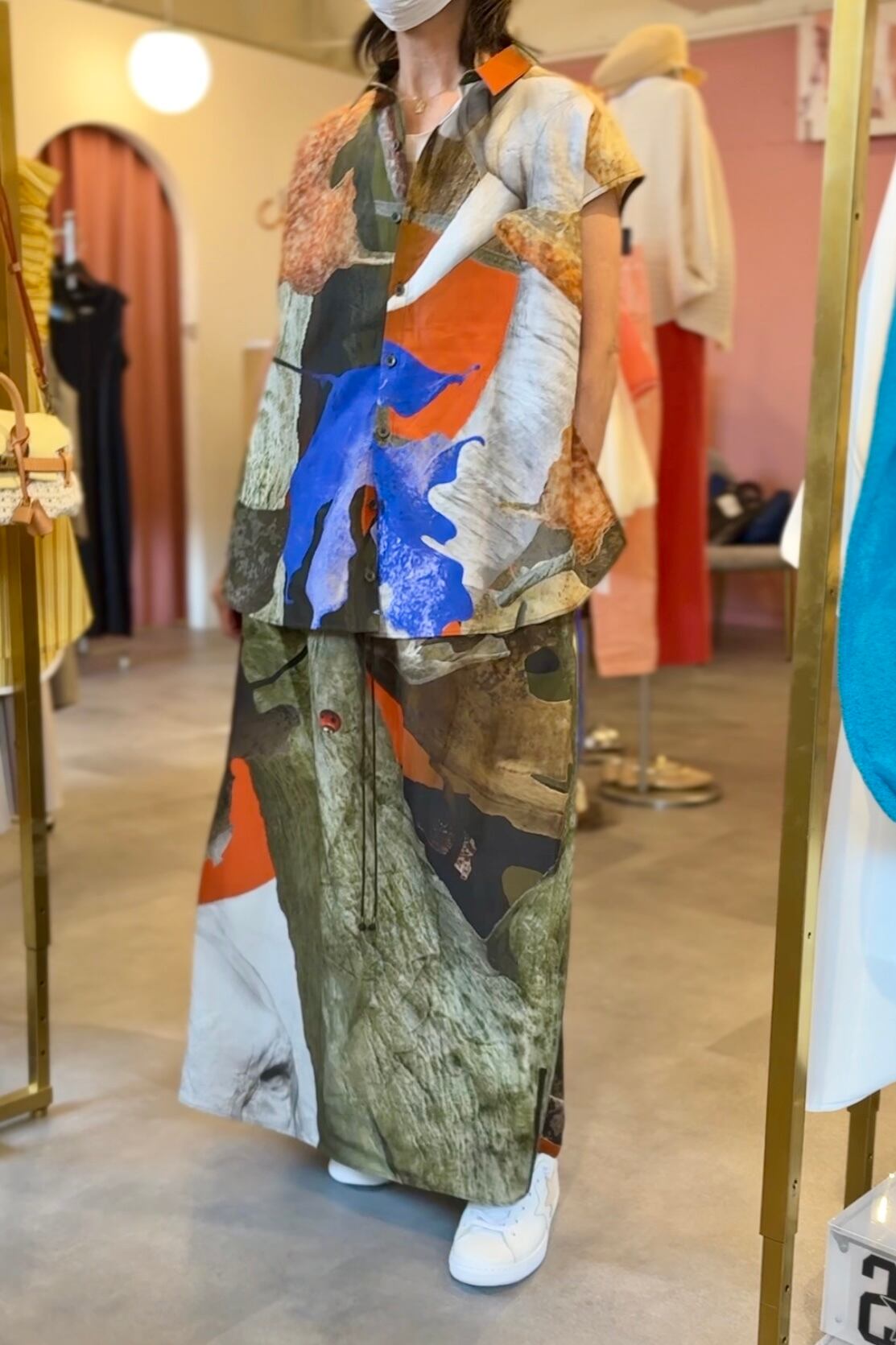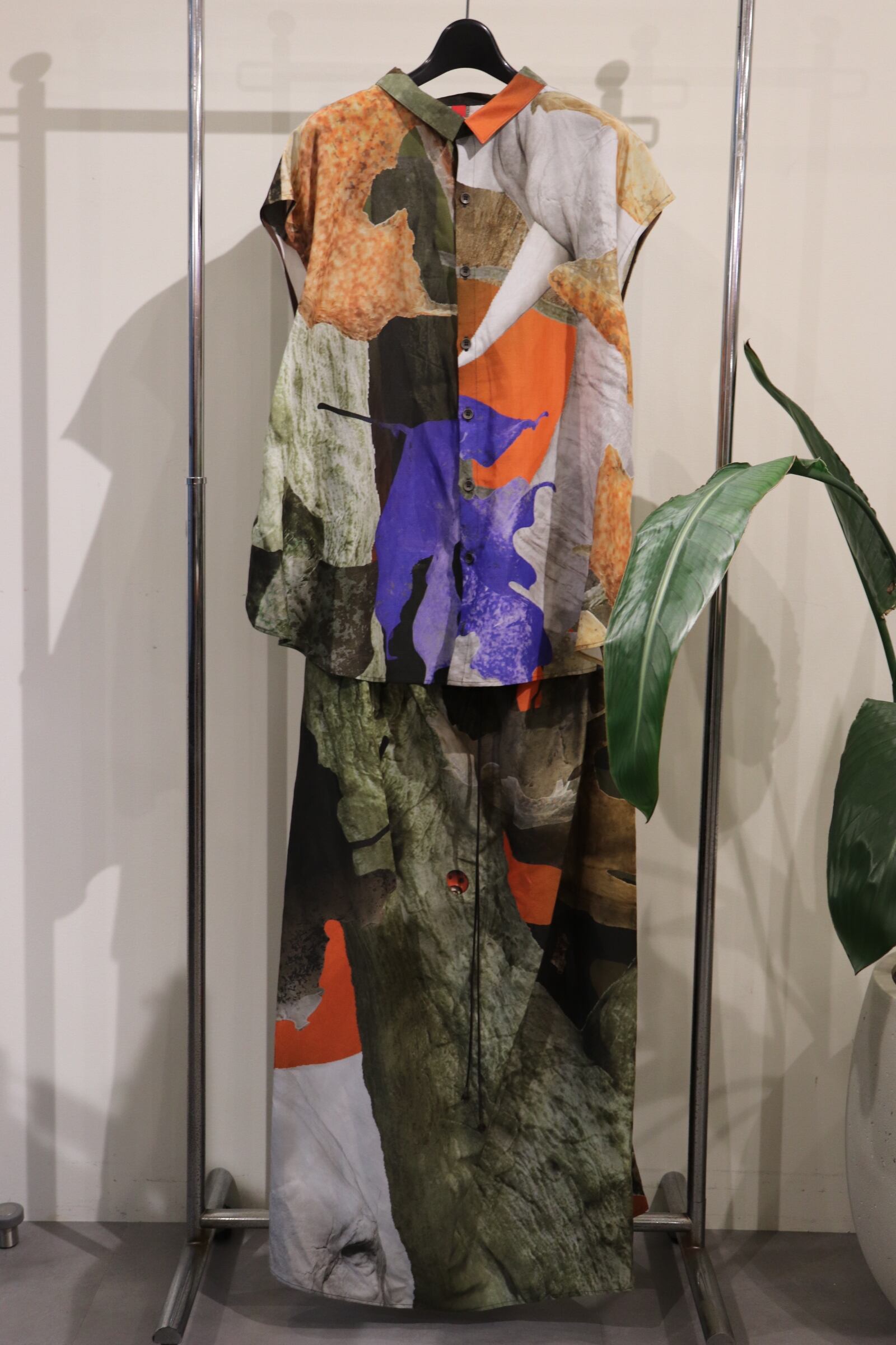 岩、てんとう虫など、大地を感じる転写柄は 大胆で唯一無二のデザイン。