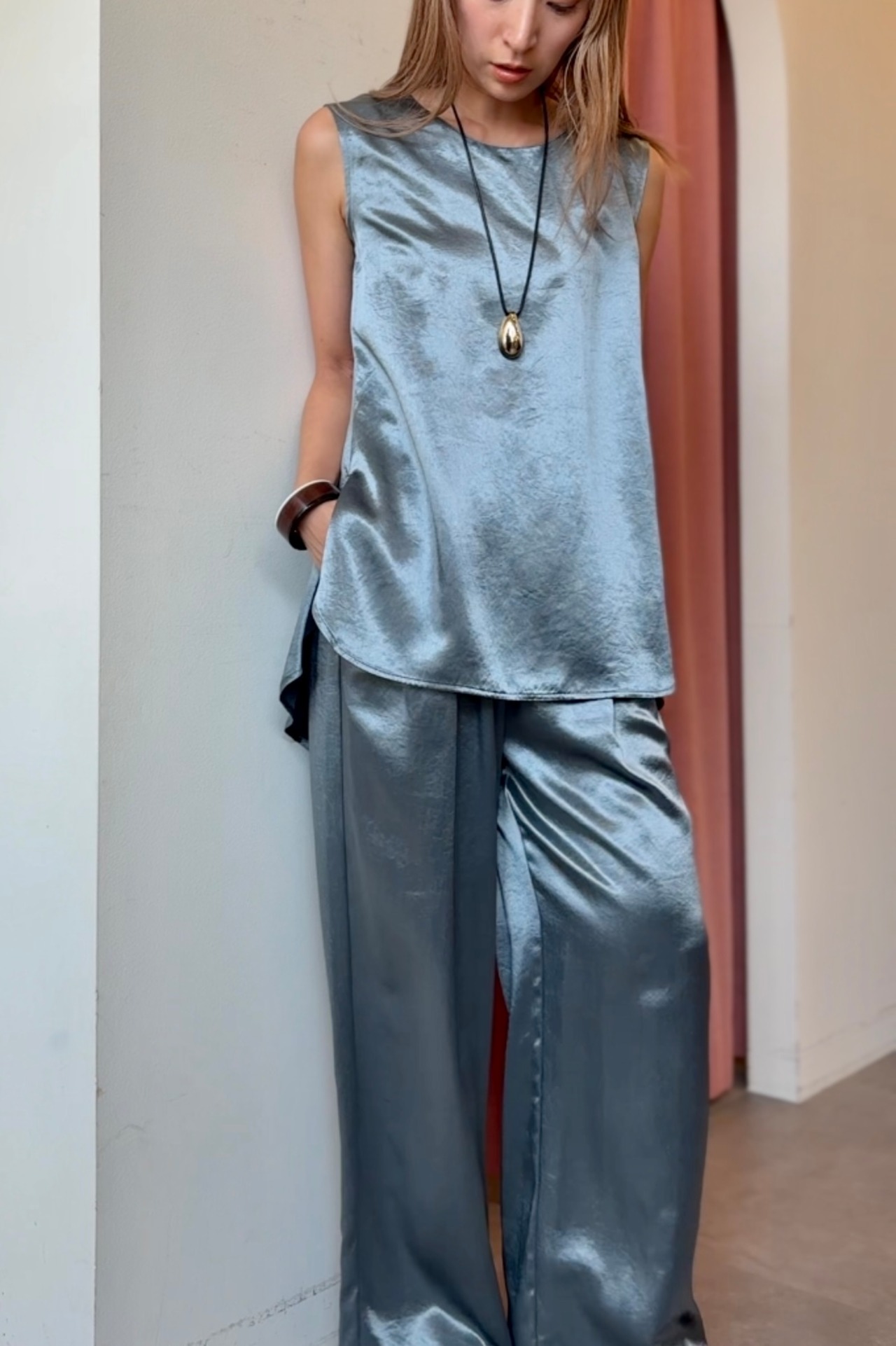 LIROMA satin sleeveless top