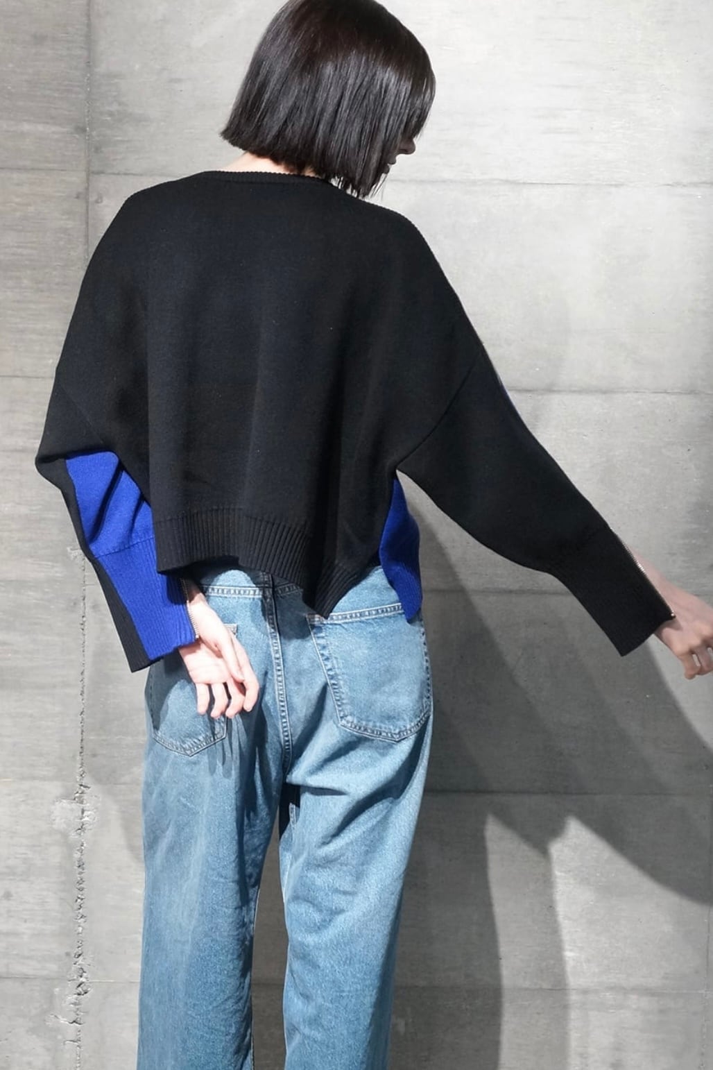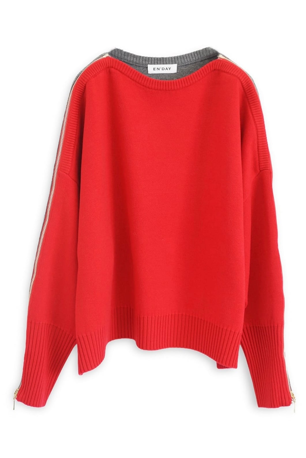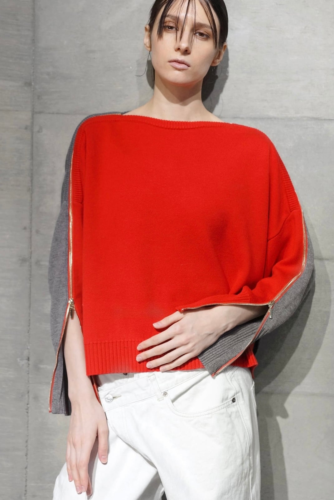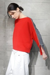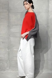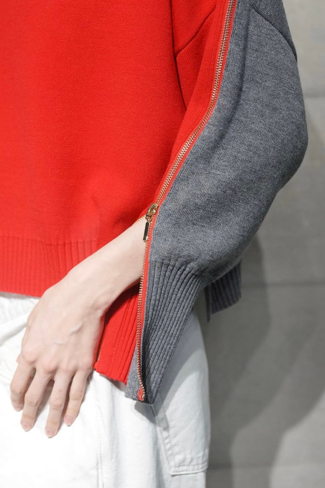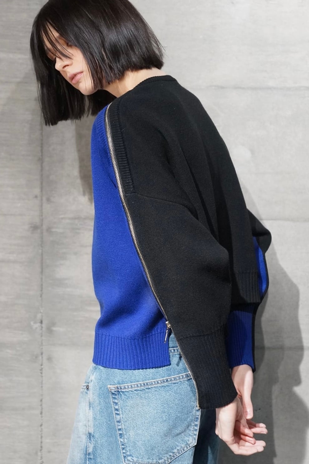 前後をバイカラーで切り替えたデザインは、どちらのカラーを前にするかで印象が一変。気分やボトムに合わせて自由にスタイリング可能。