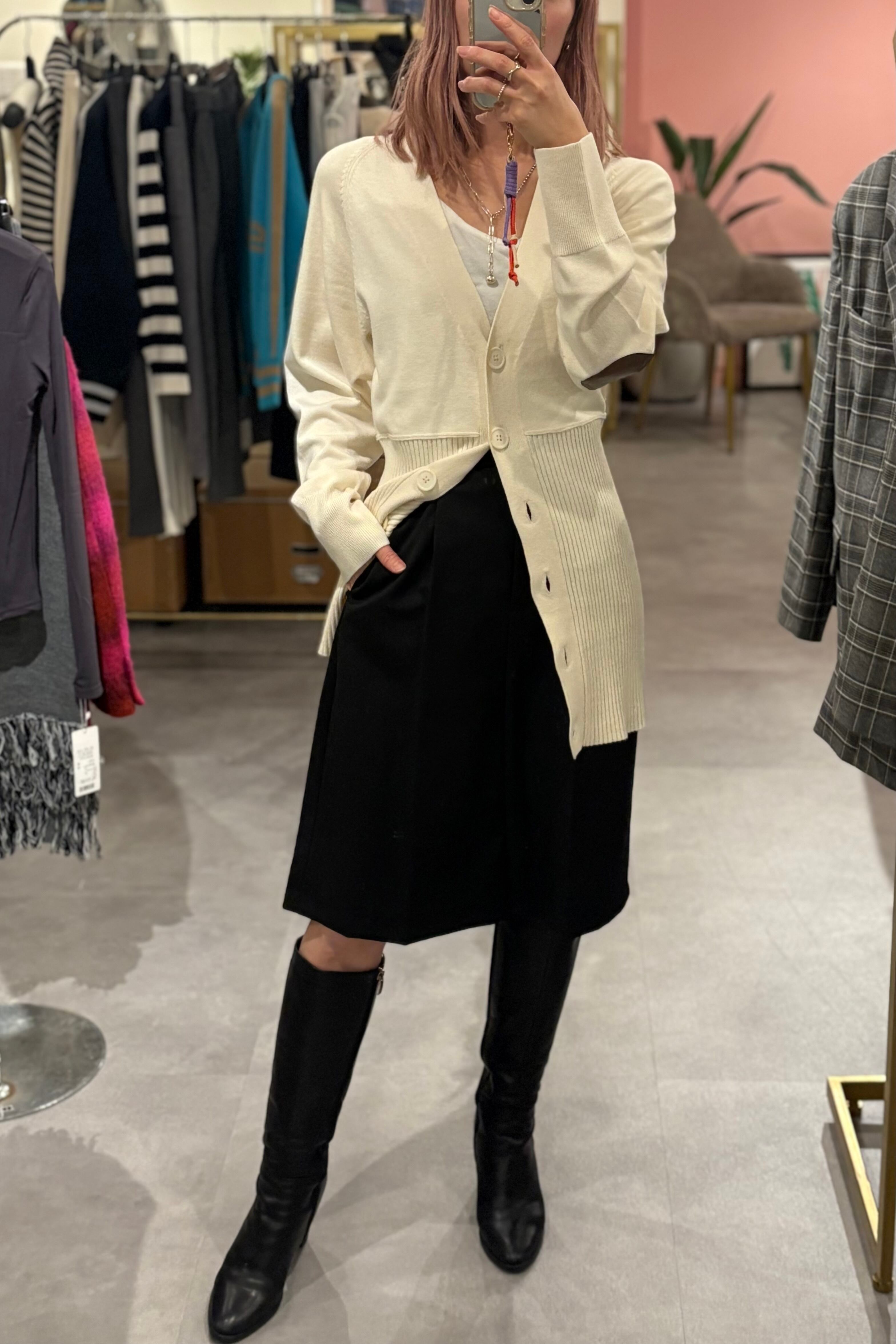 ボタンも大きめで、さっと着るだけでどこか大人可愛い印象を醸し出してくれます。