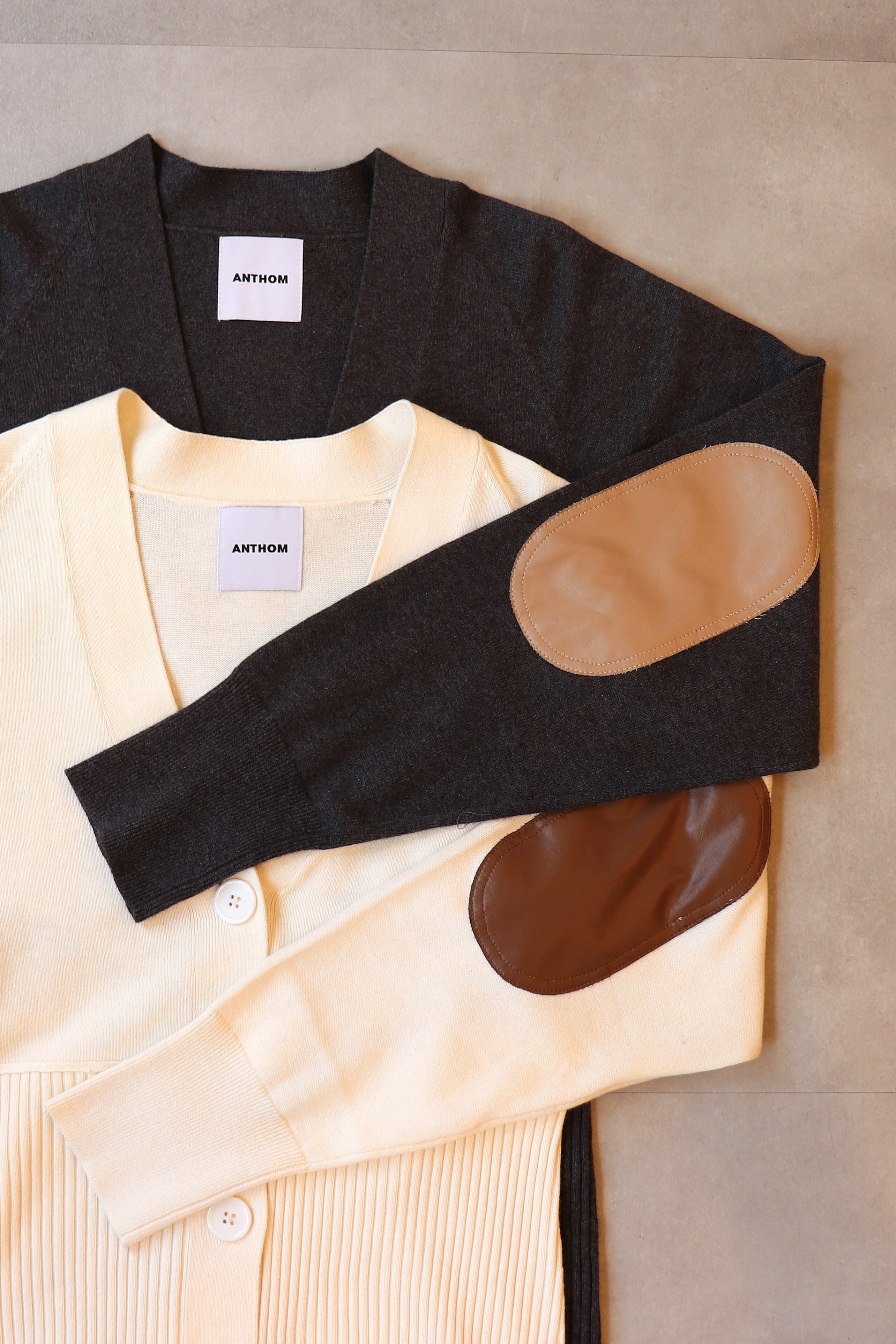 肘に施された合皮のパッチがワンポイント。