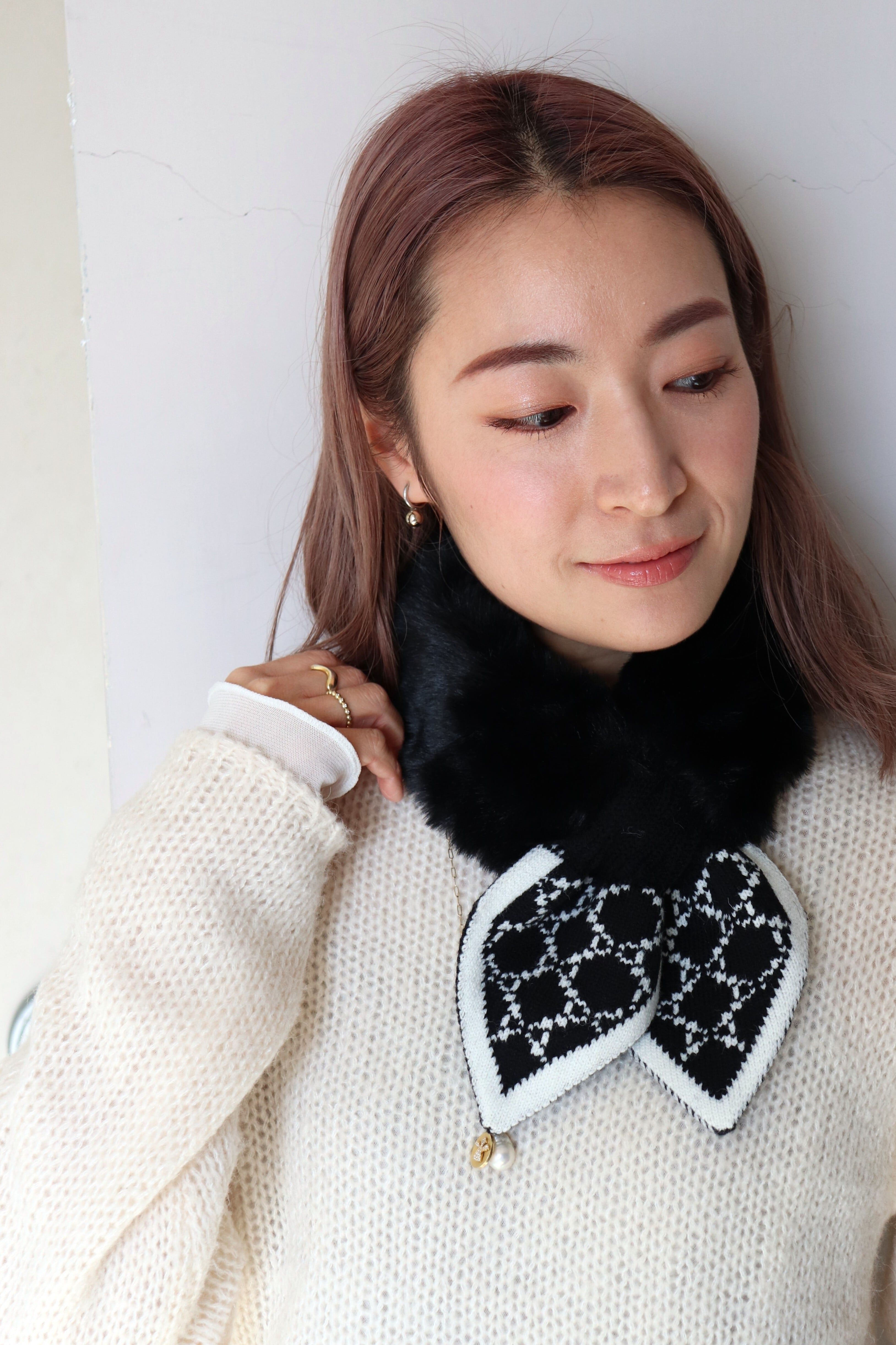 Monogram fur knit tippet