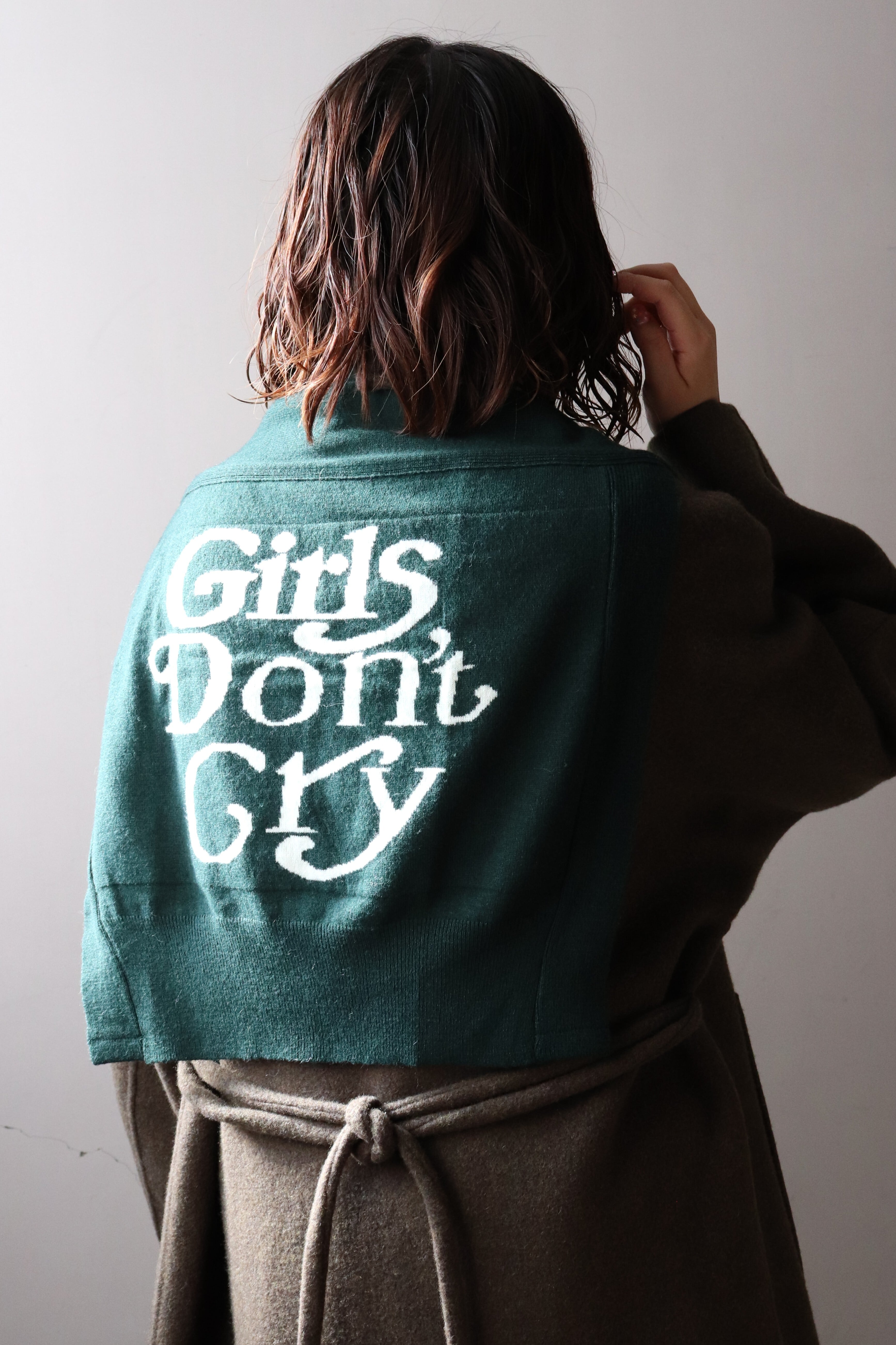 まるでニットを肩にかけているようなお茶目なデザインのストール♪