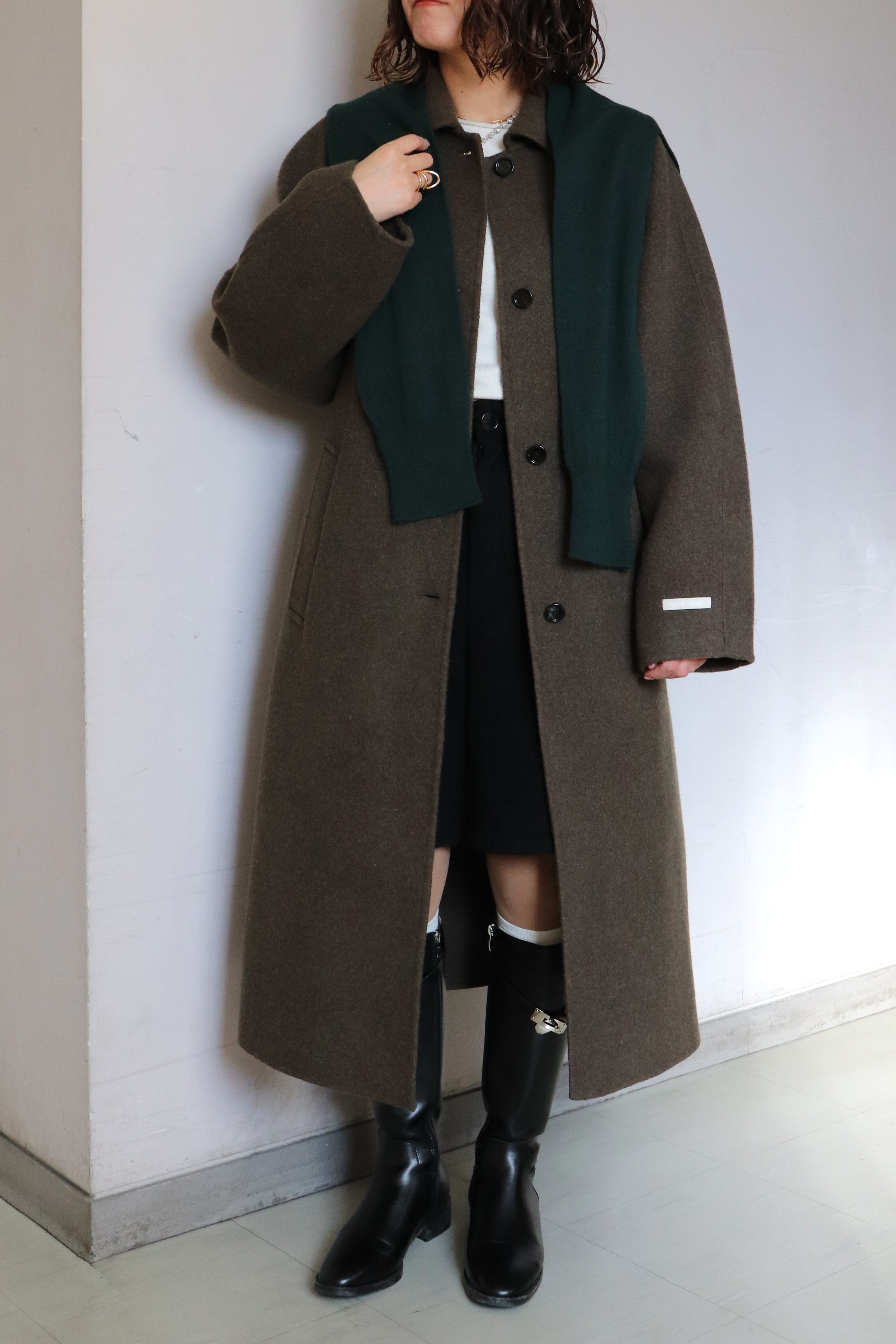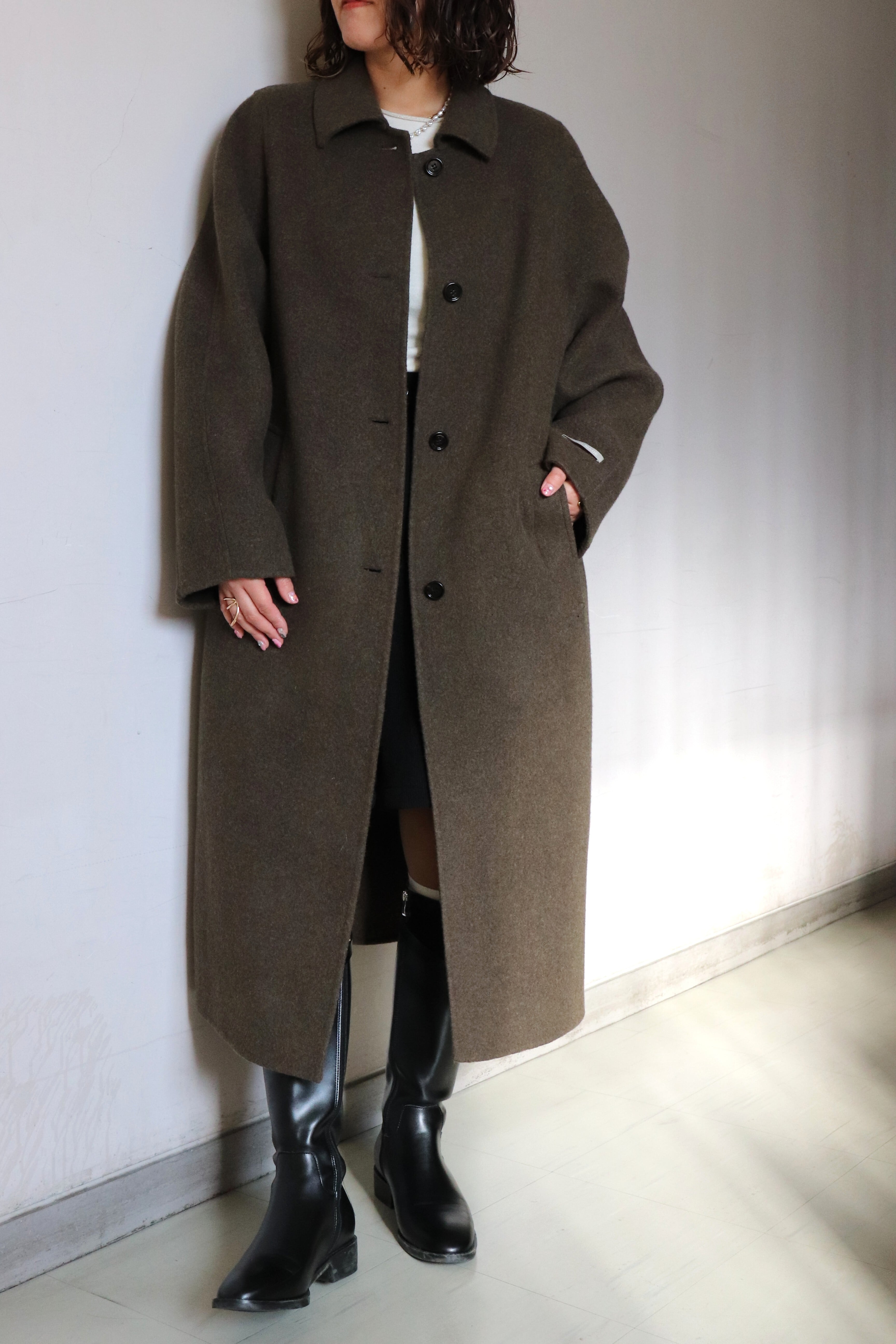 カシミヤ混のロングコート。
