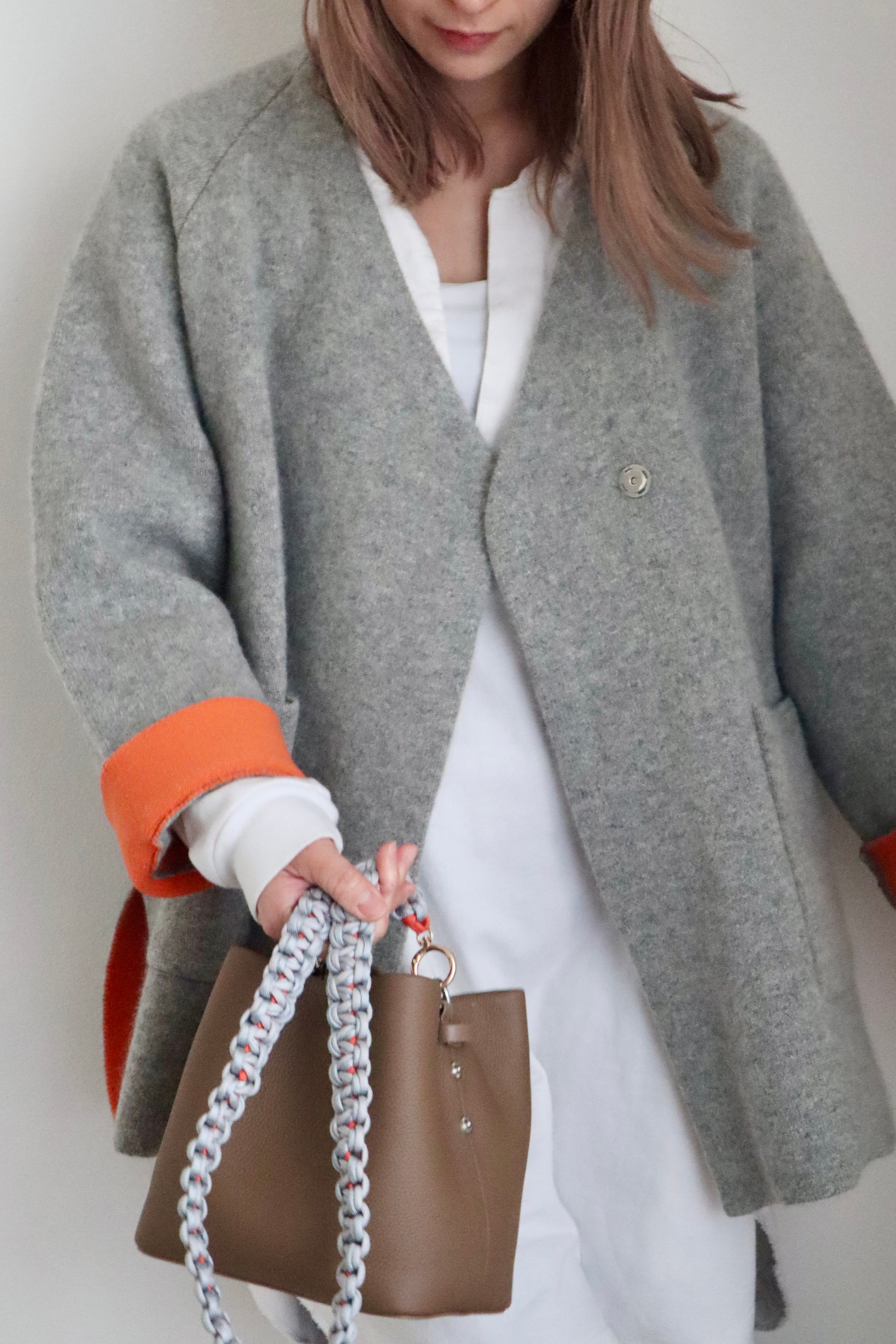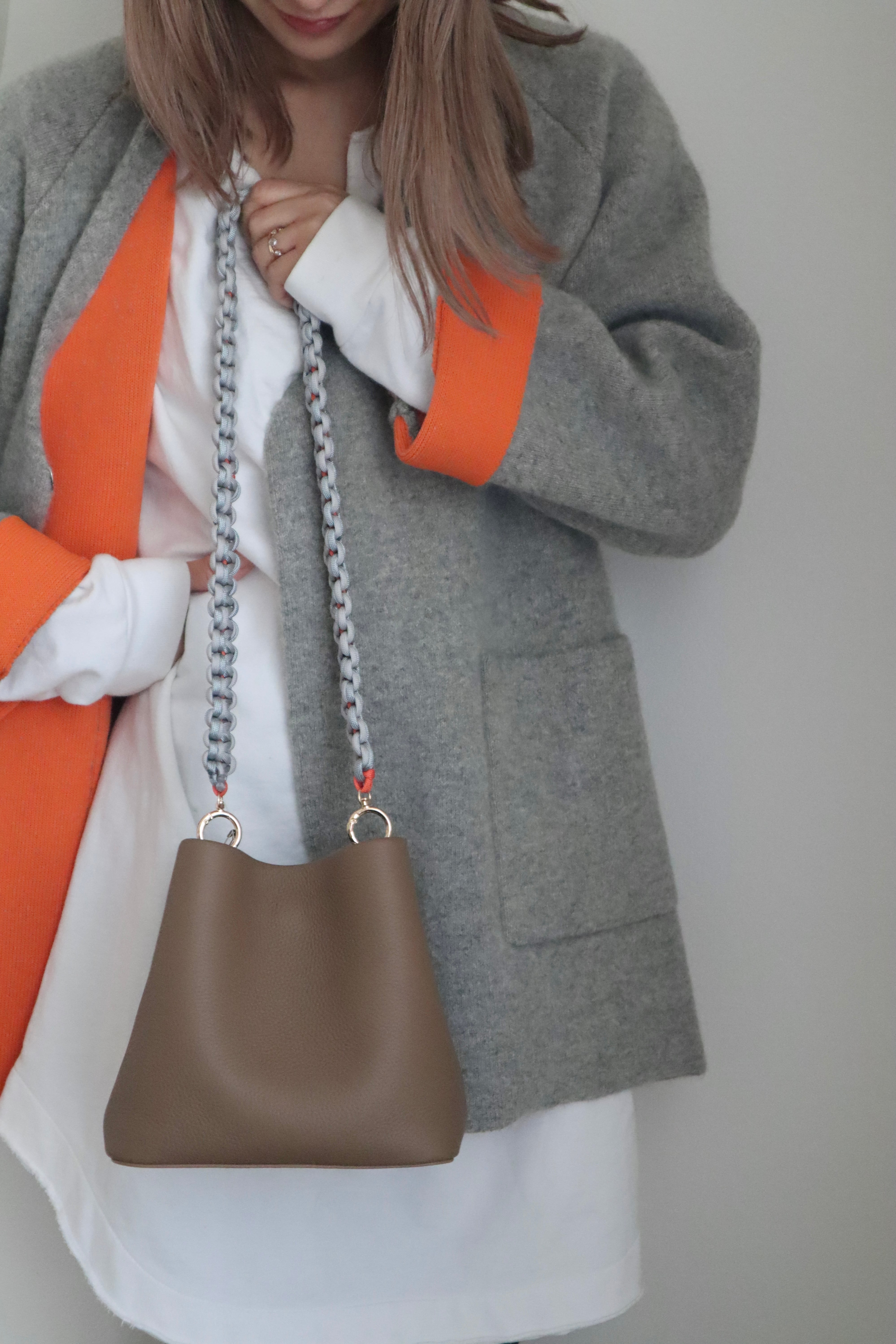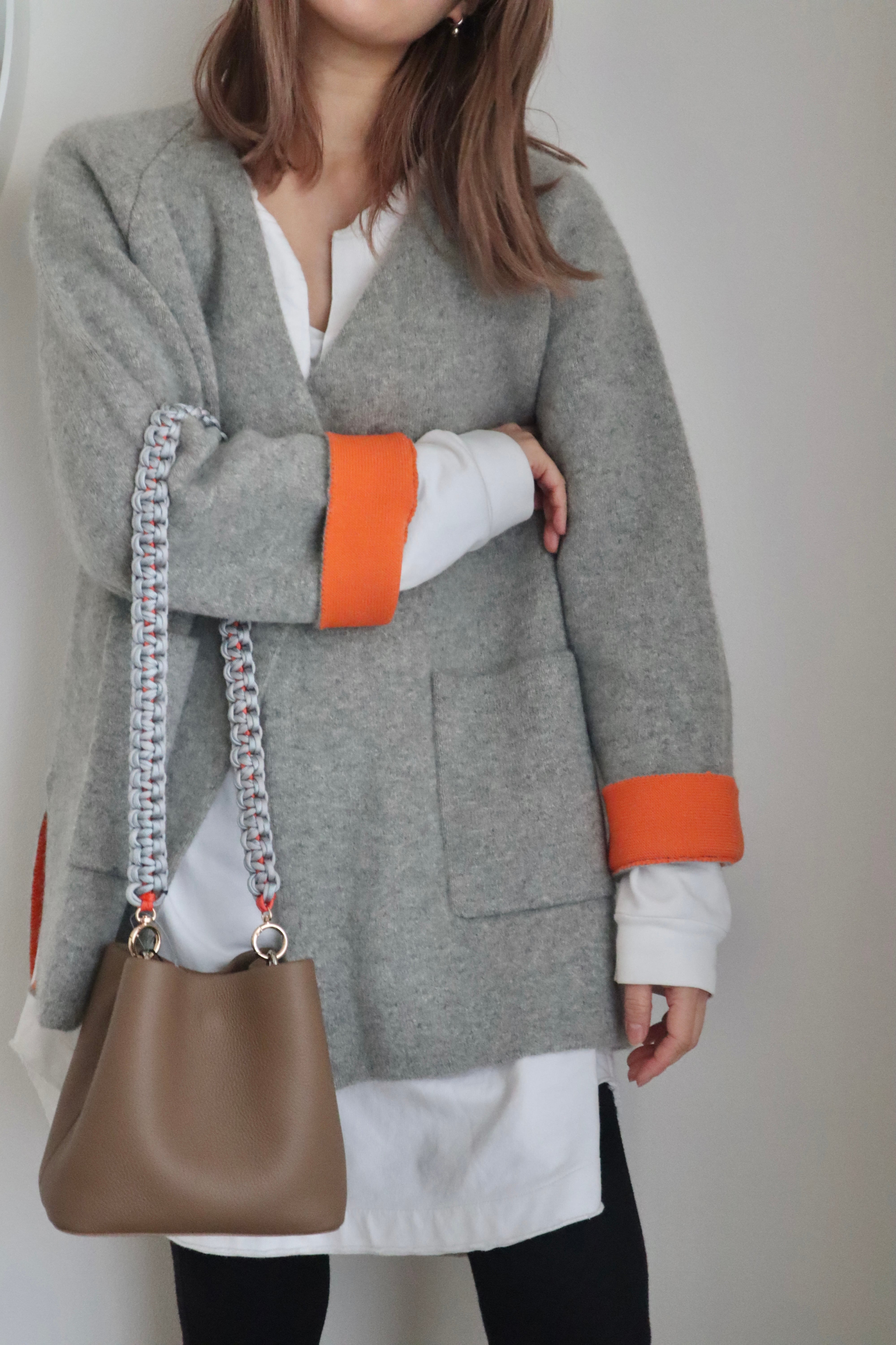 袖と裏地のビビッドなオレンジがワンポイントになって着るだけでお洒落に◎