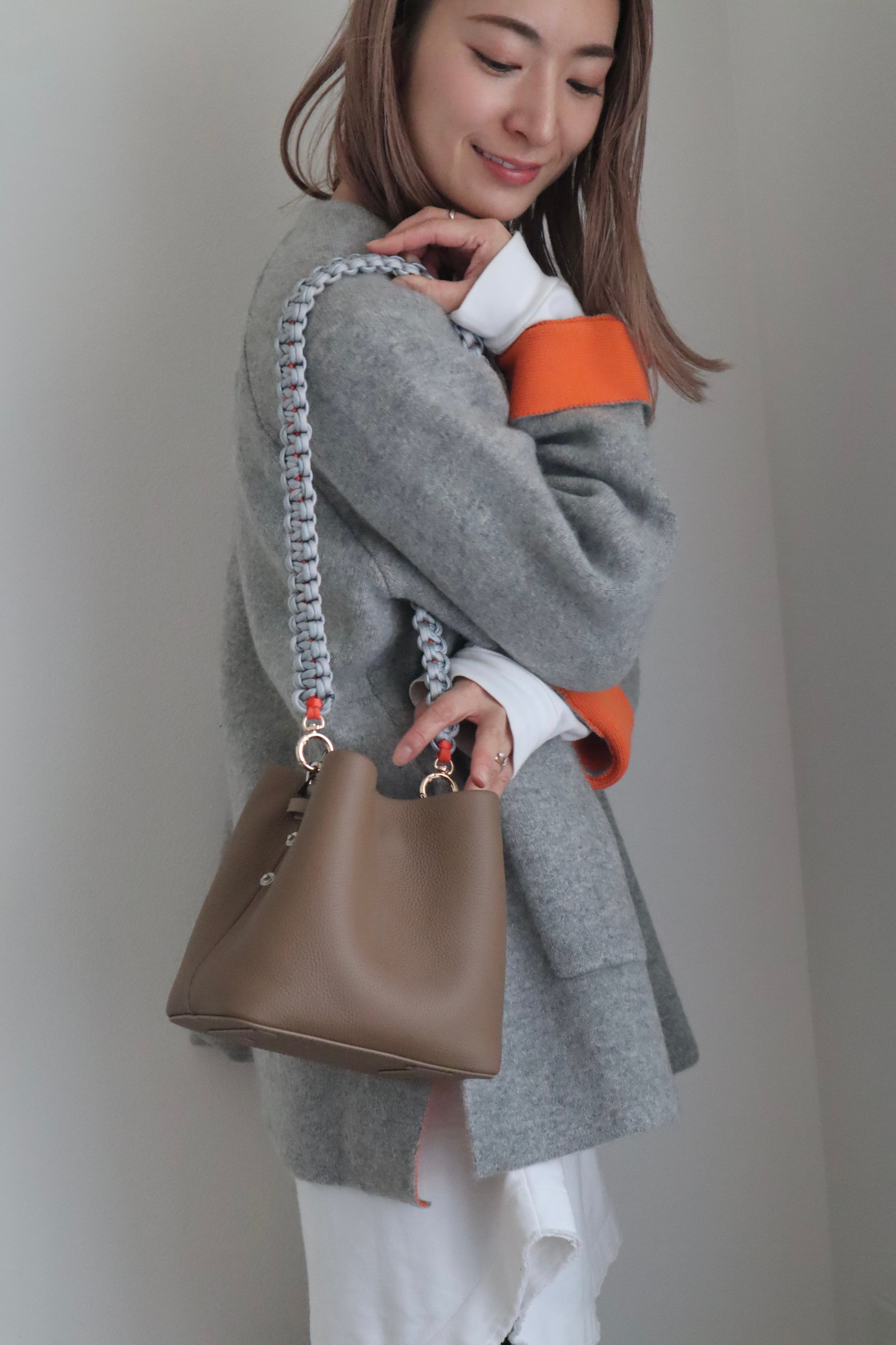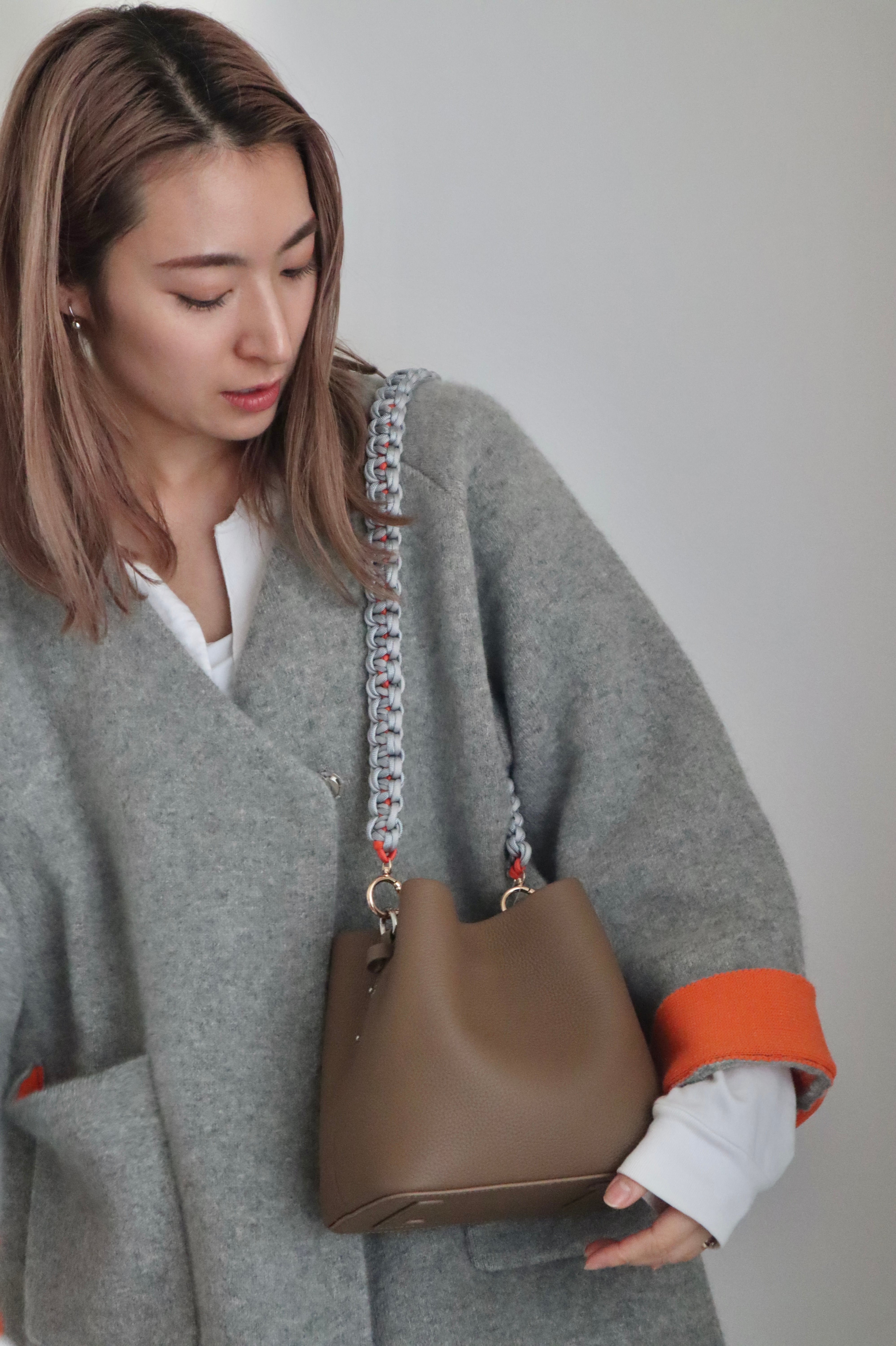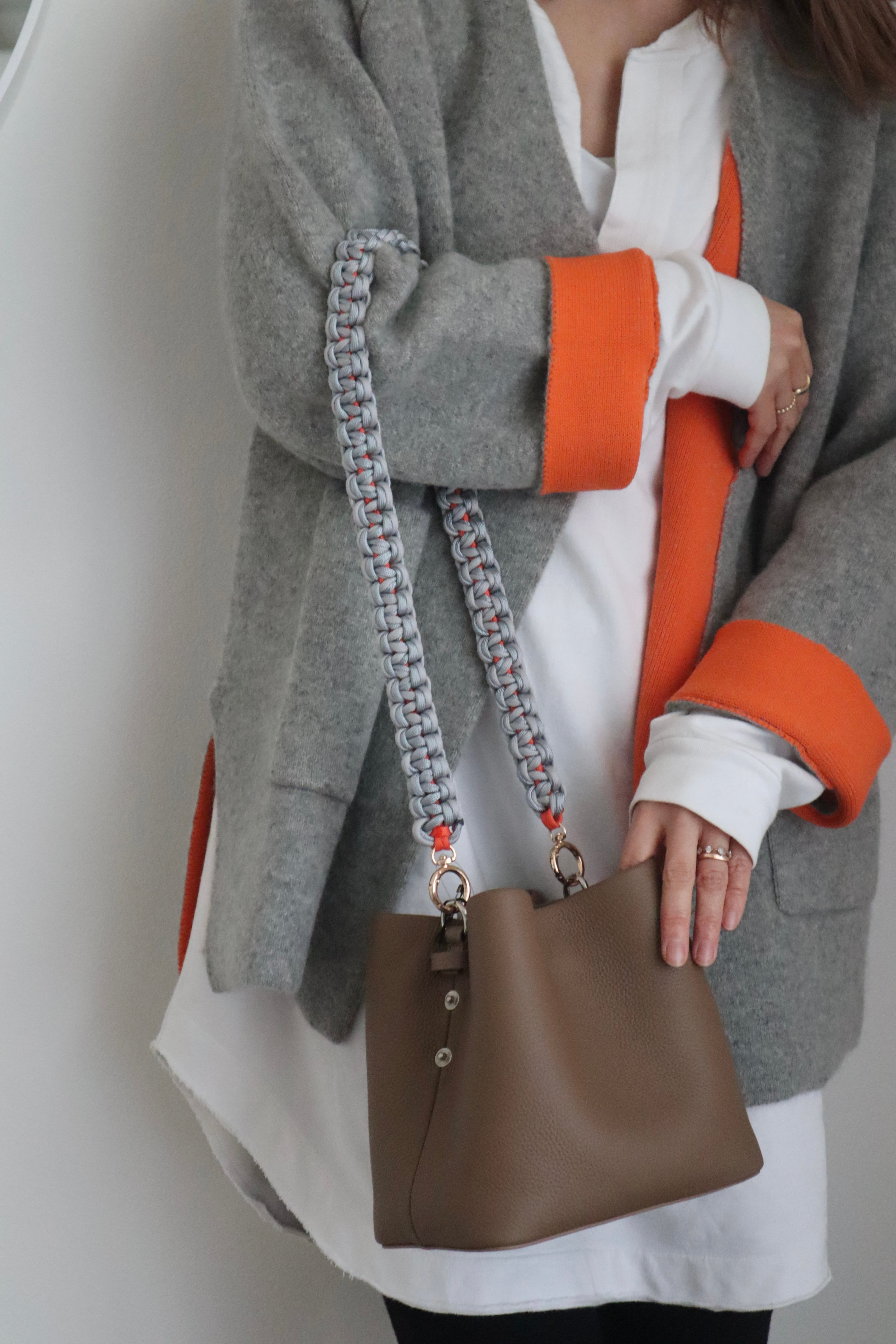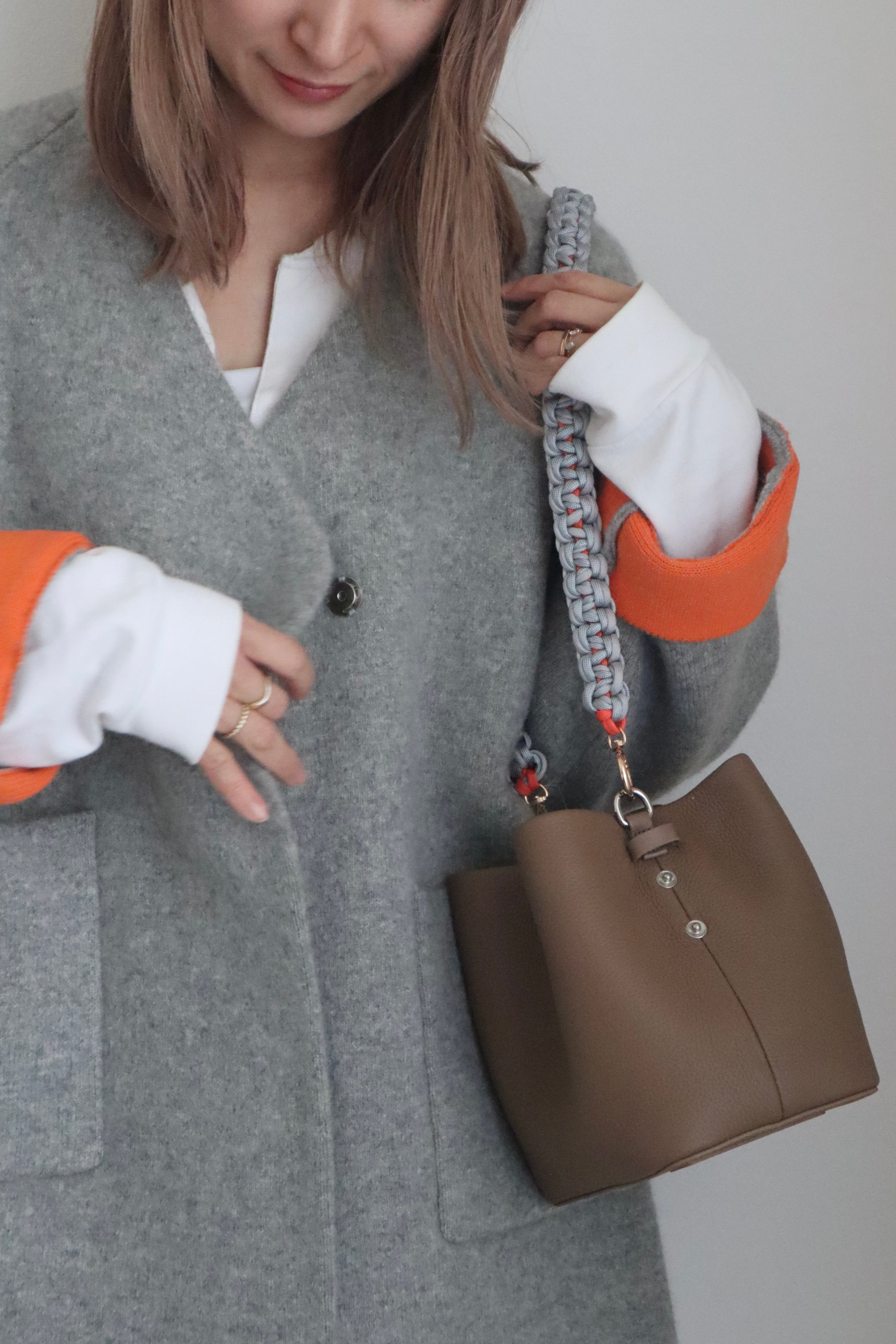 袖と裏地のビビッドなオレンジがワンポイントになって着るだけでお洒落に◎