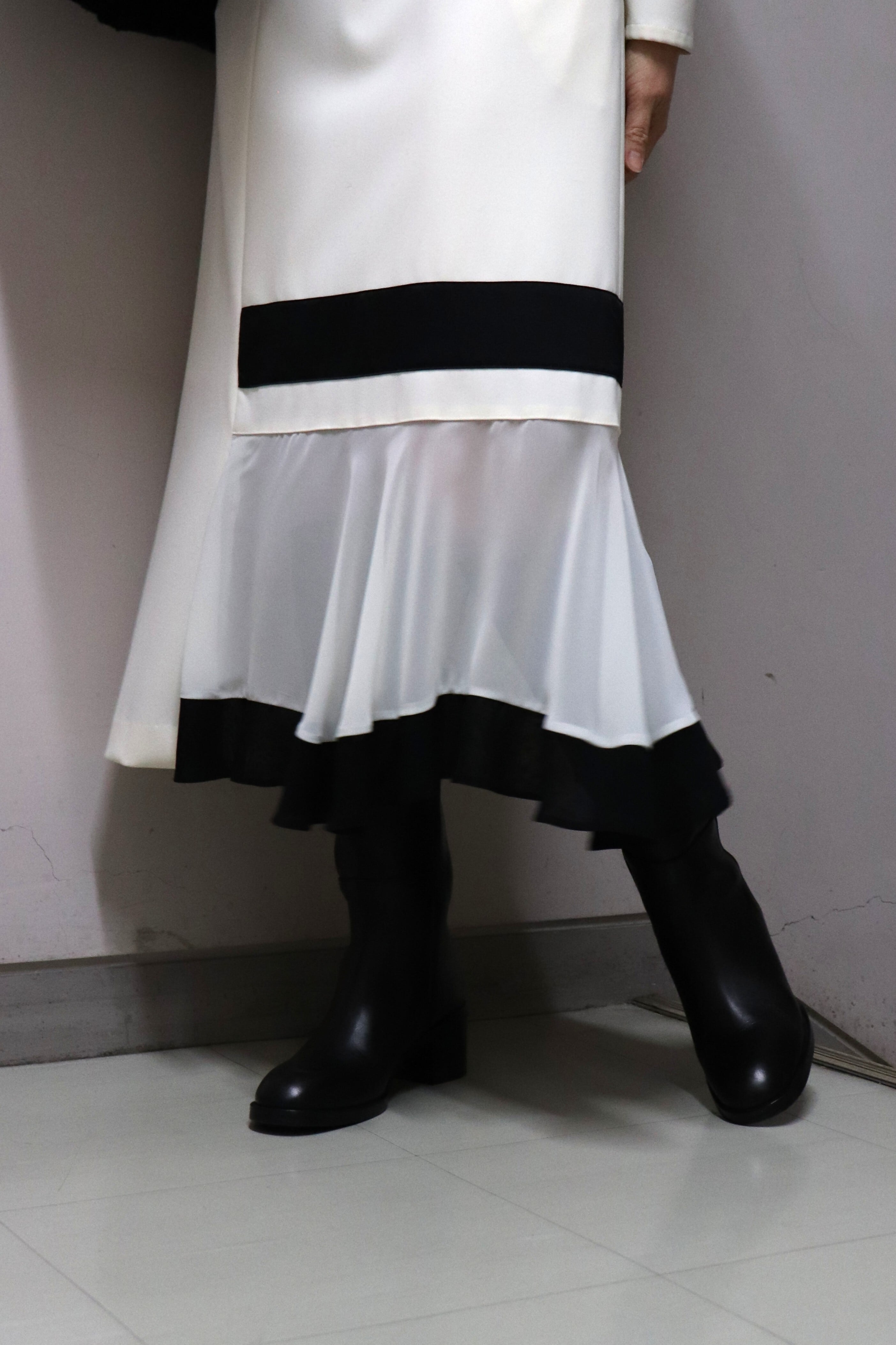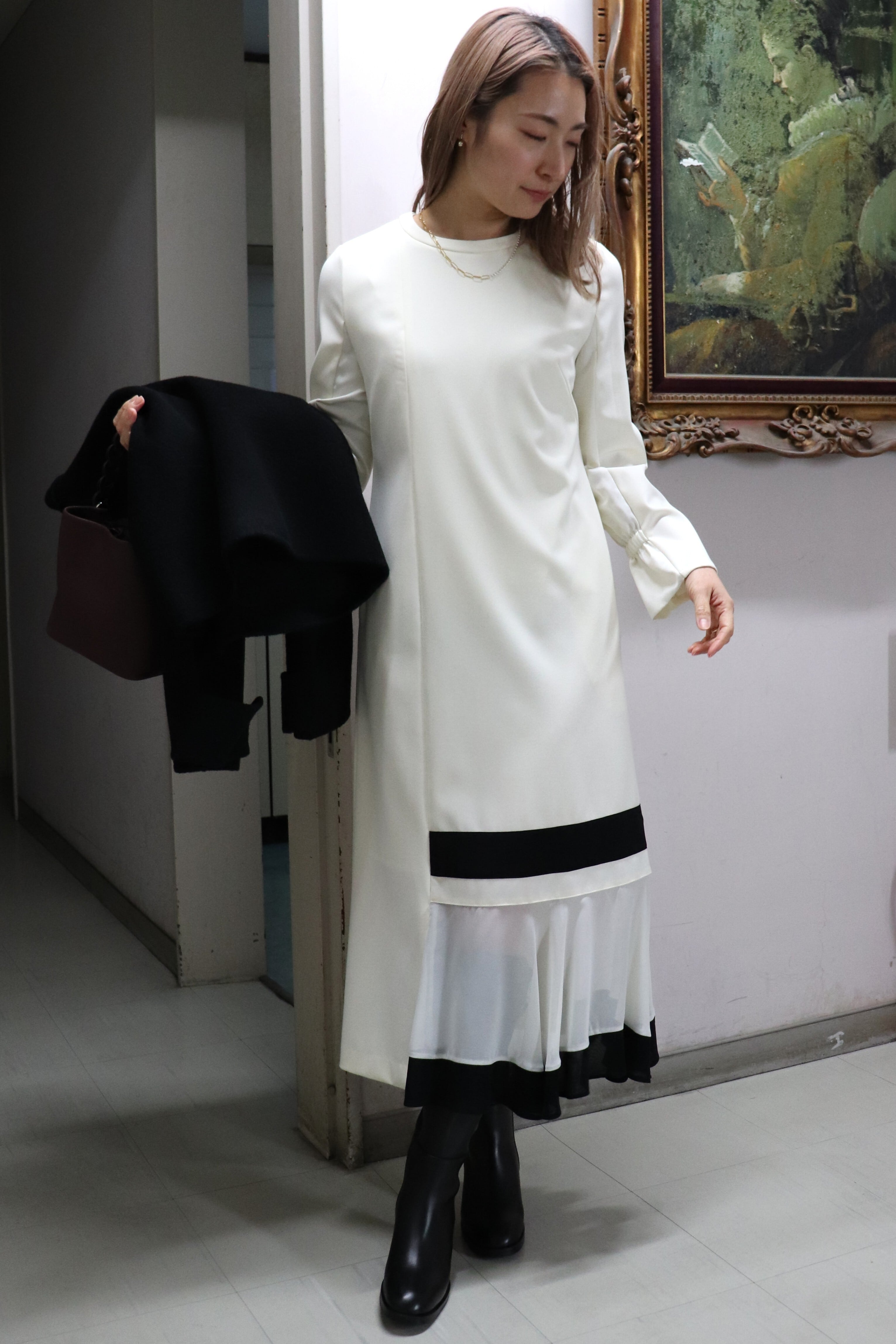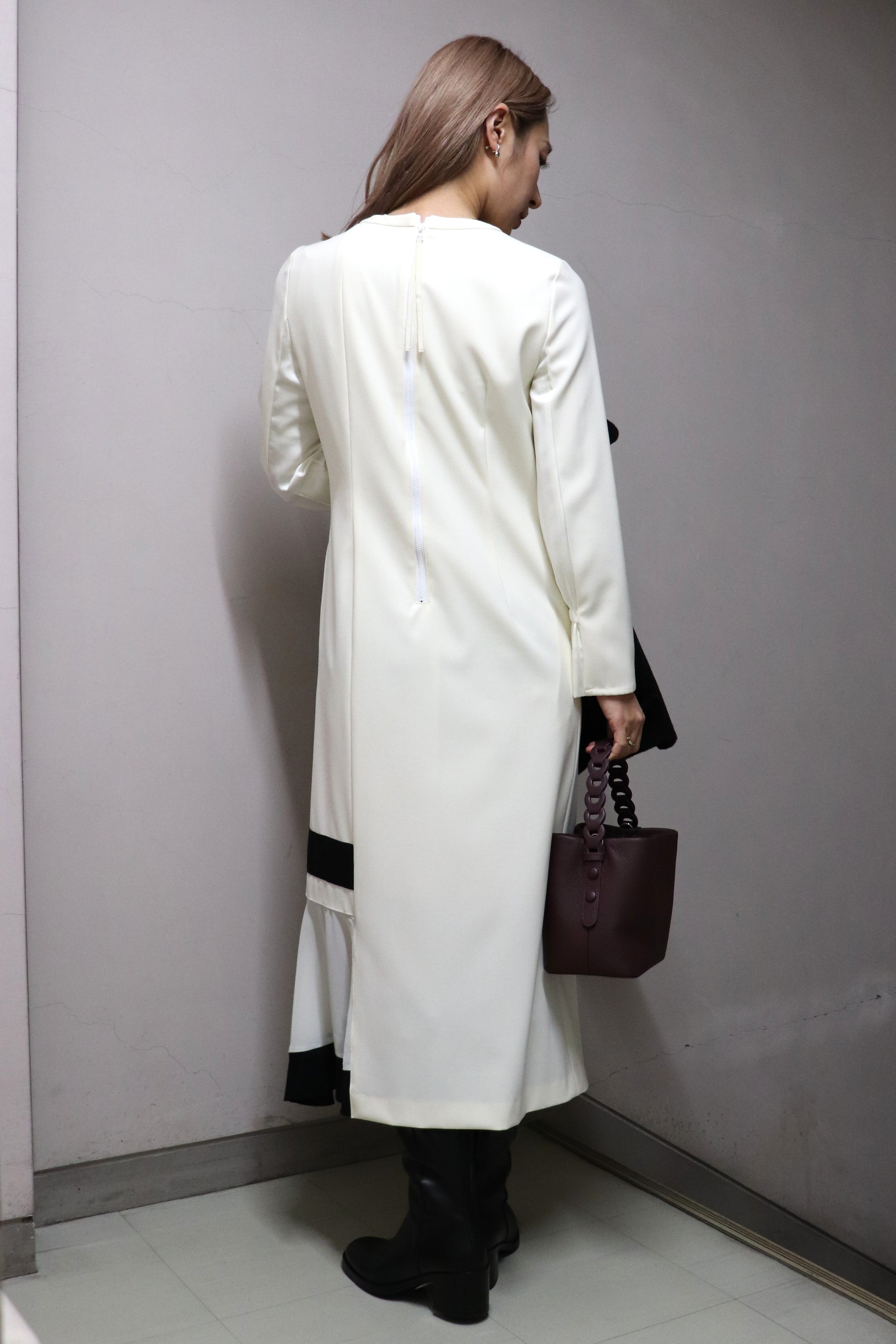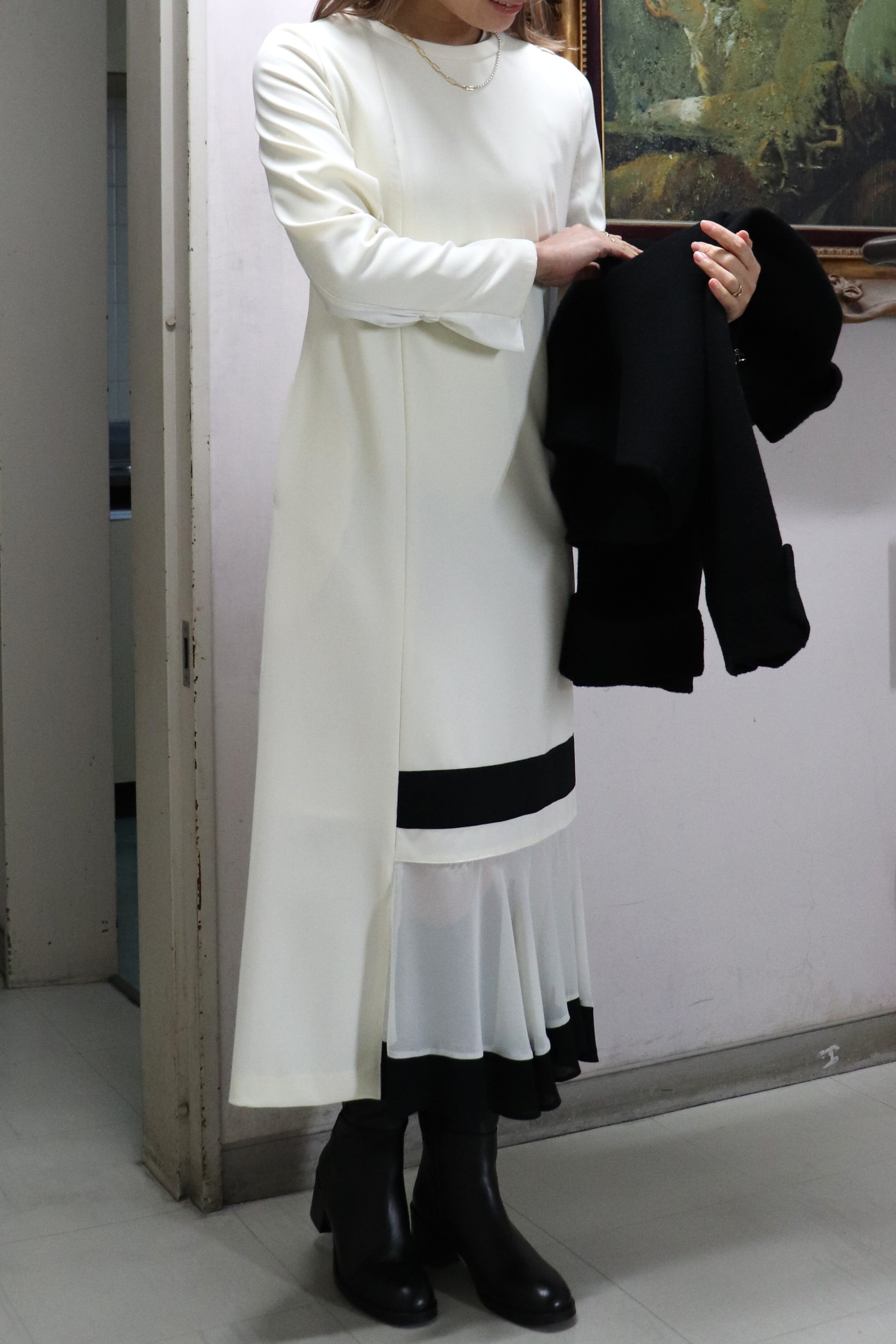 ブラックのラインがモダンなワンピース。