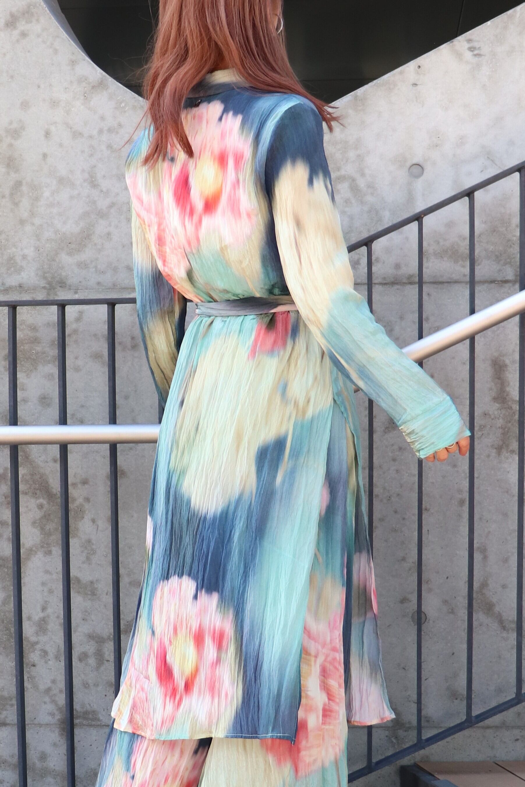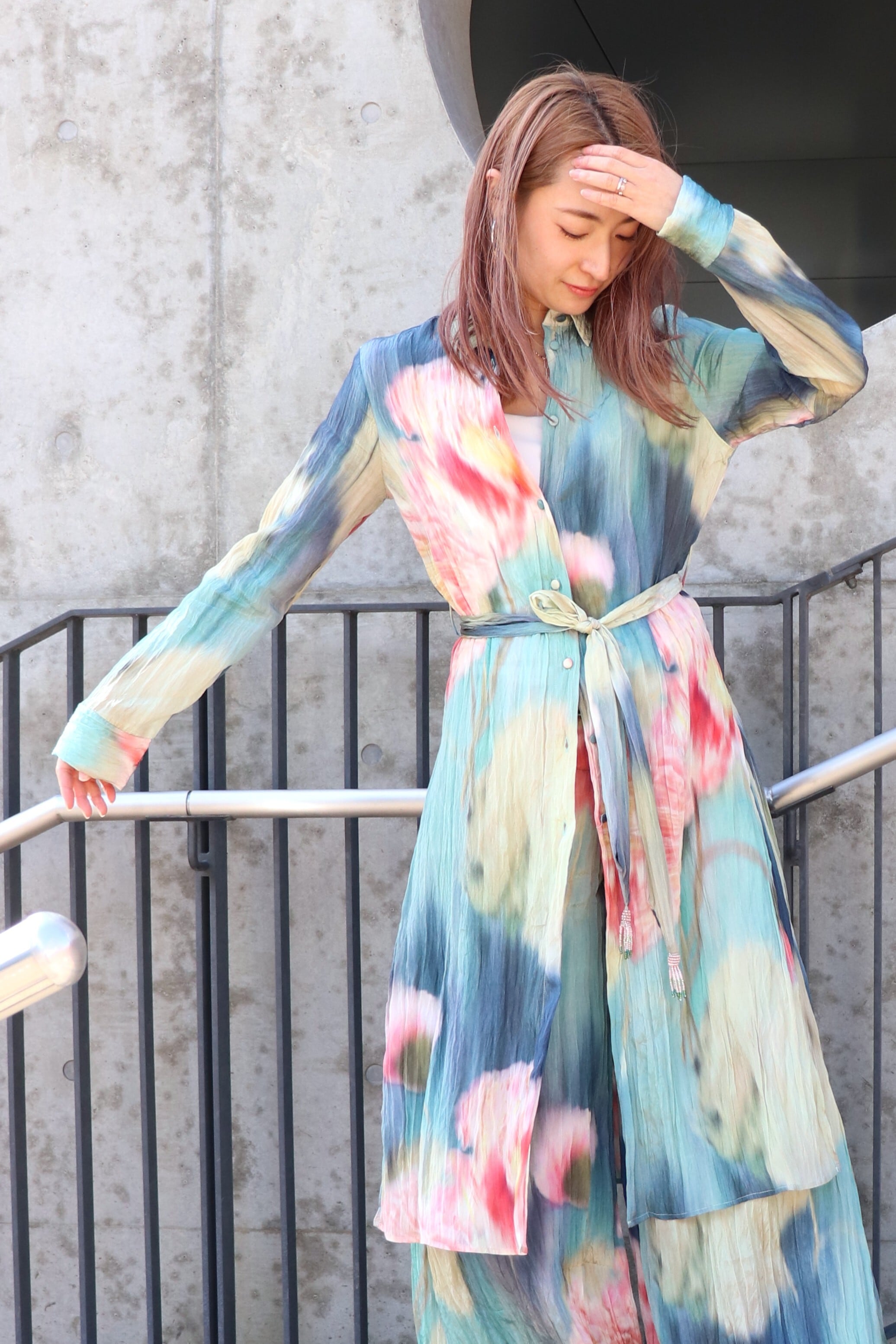 春らしい色合いのシャツワンピース。