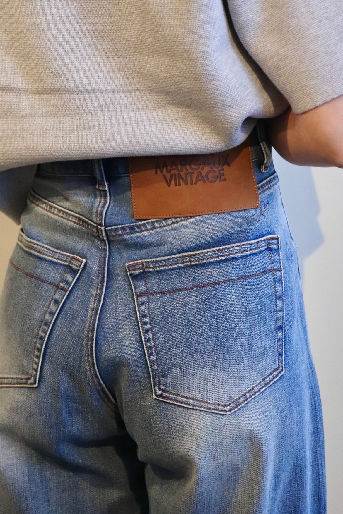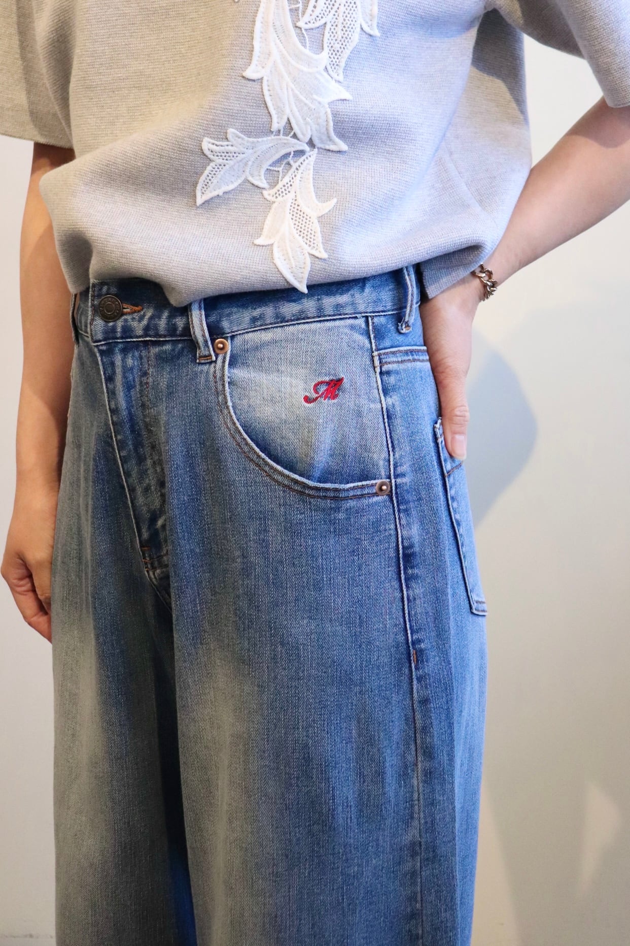 ポケットの"M"の赤い刺繍がポイント。