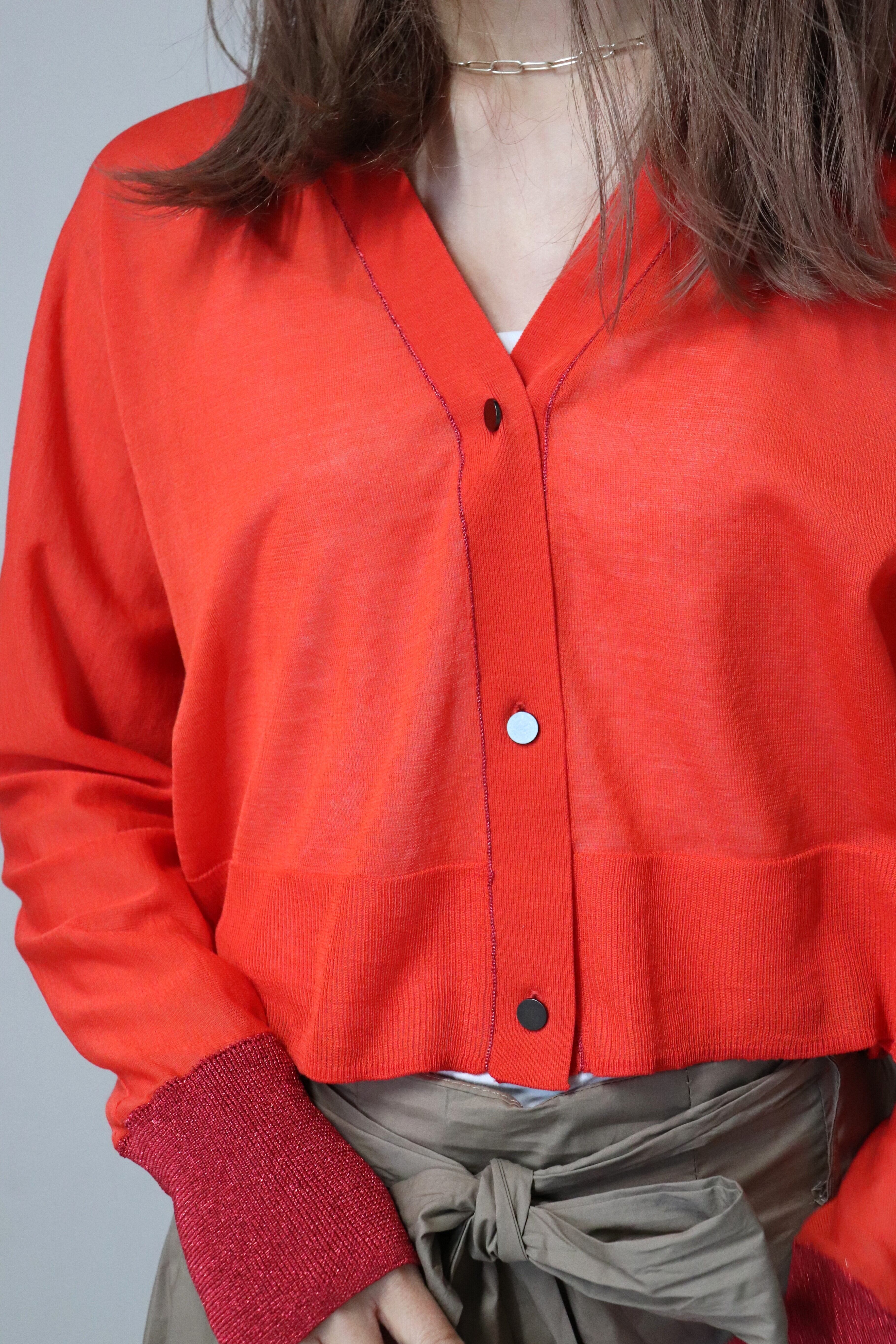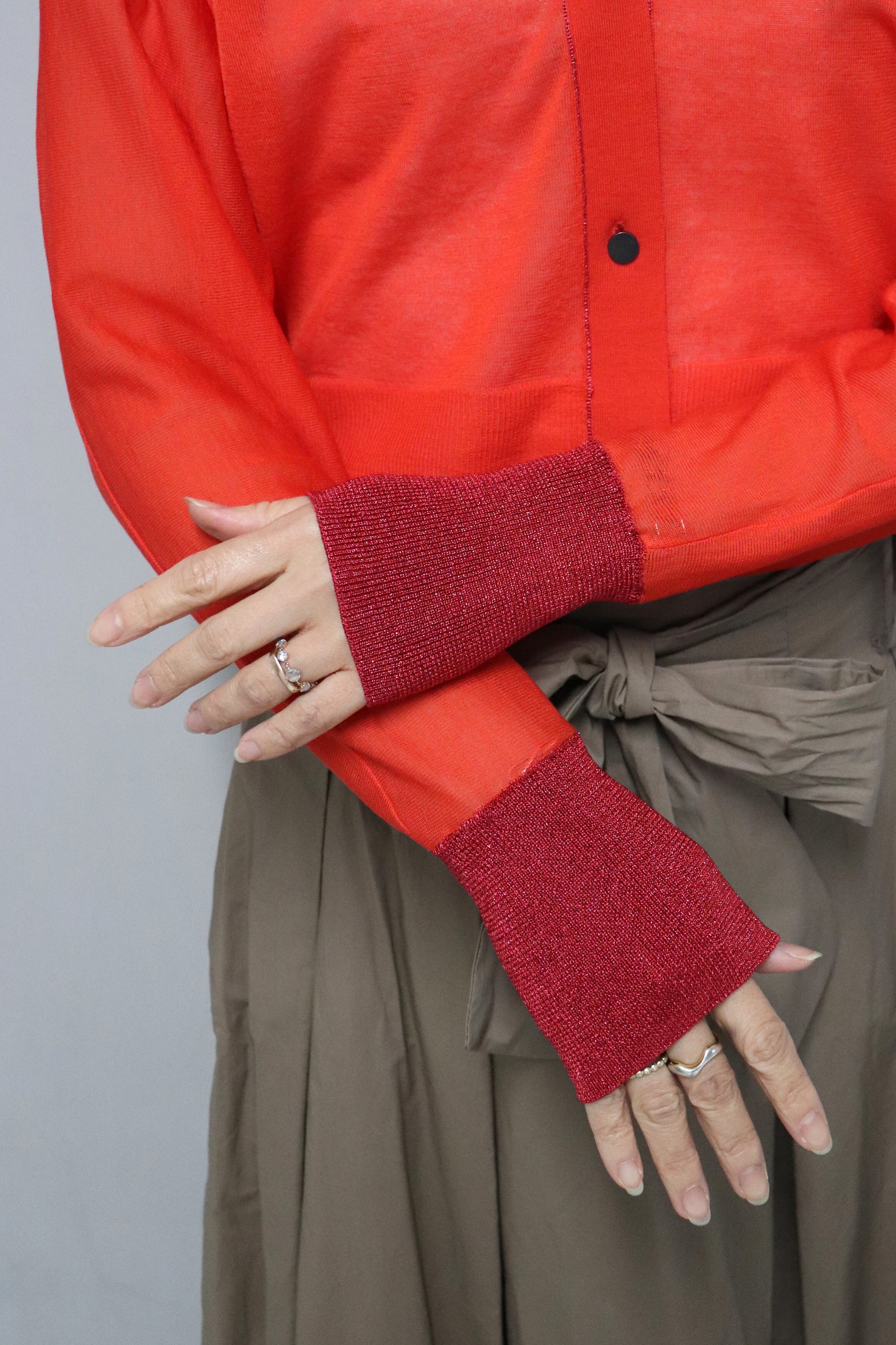 Sleeve Lame Short-Length Cardigan