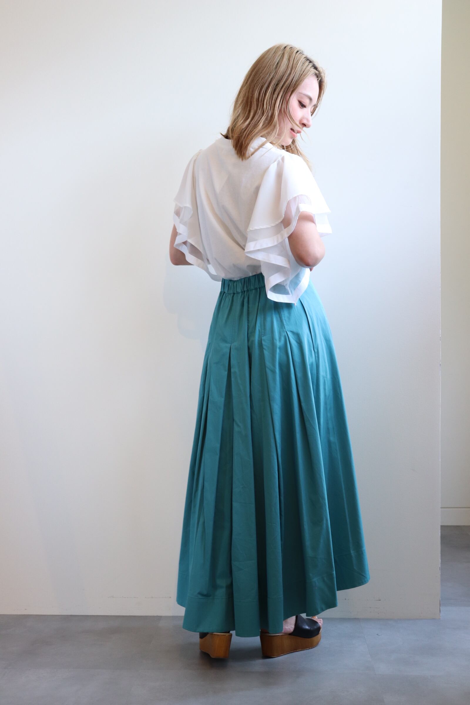 フリル袖コットンTシャツ