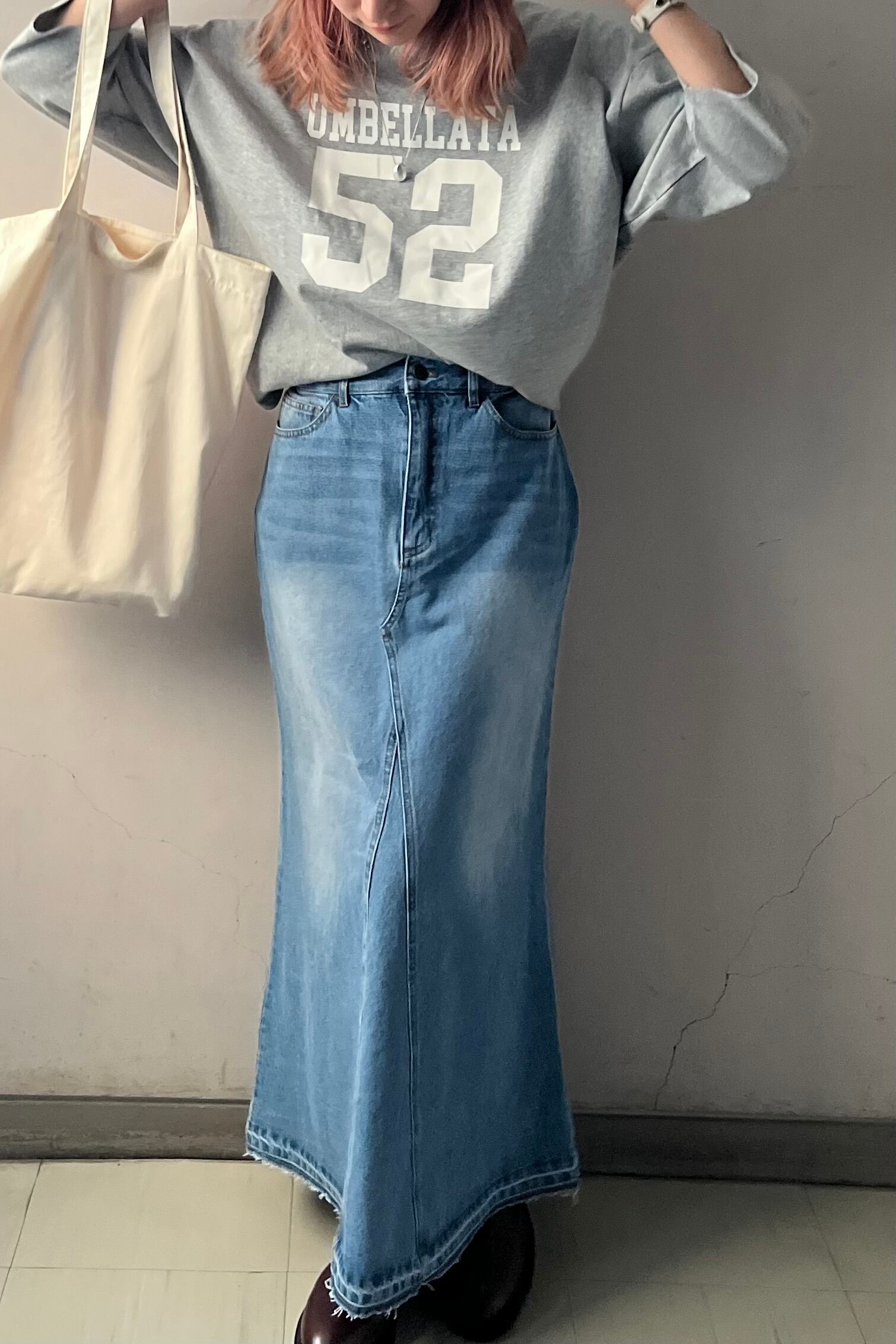 Denim mermaid line long skirt