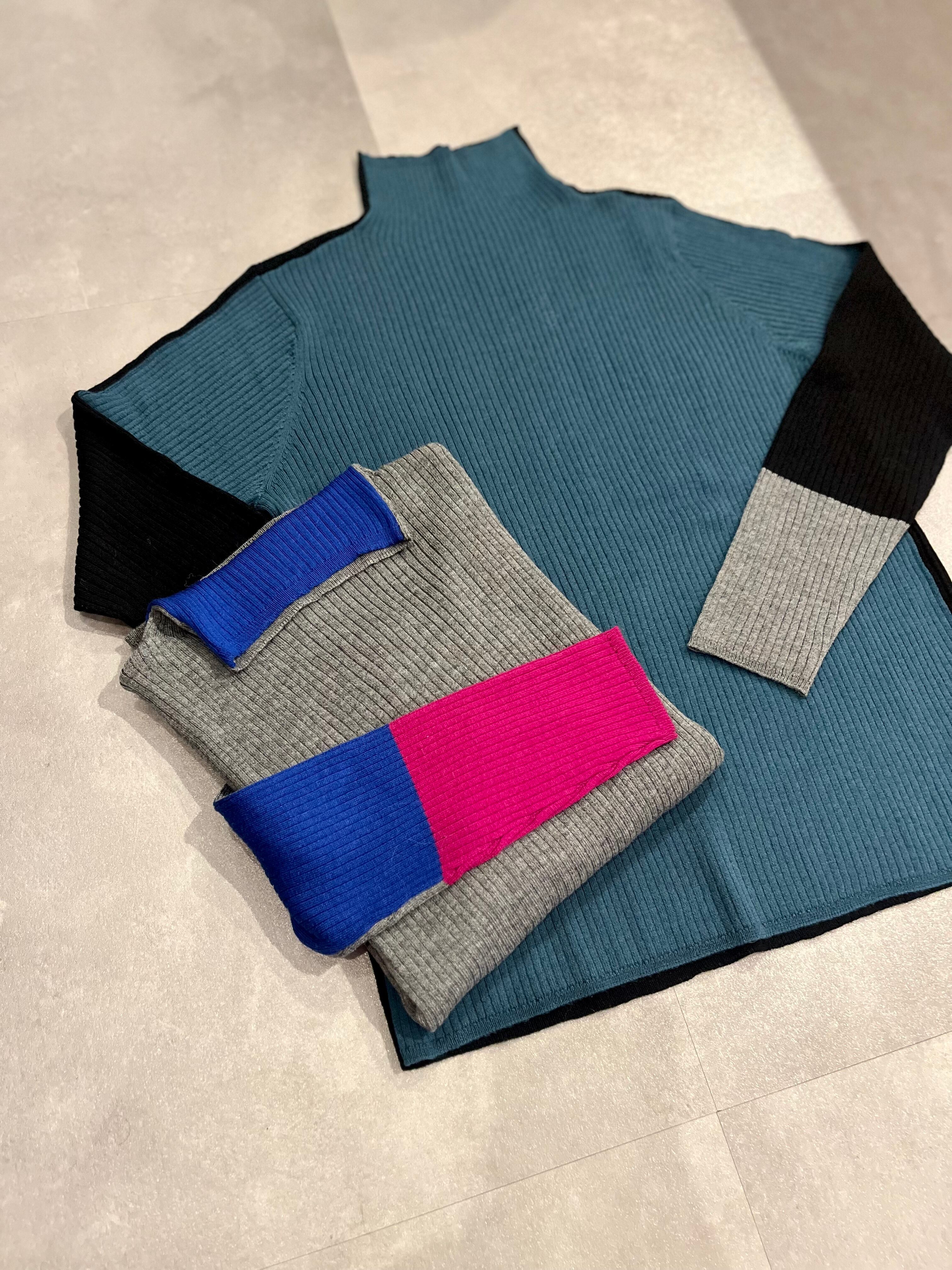カラー切替が特徴のリブニット。