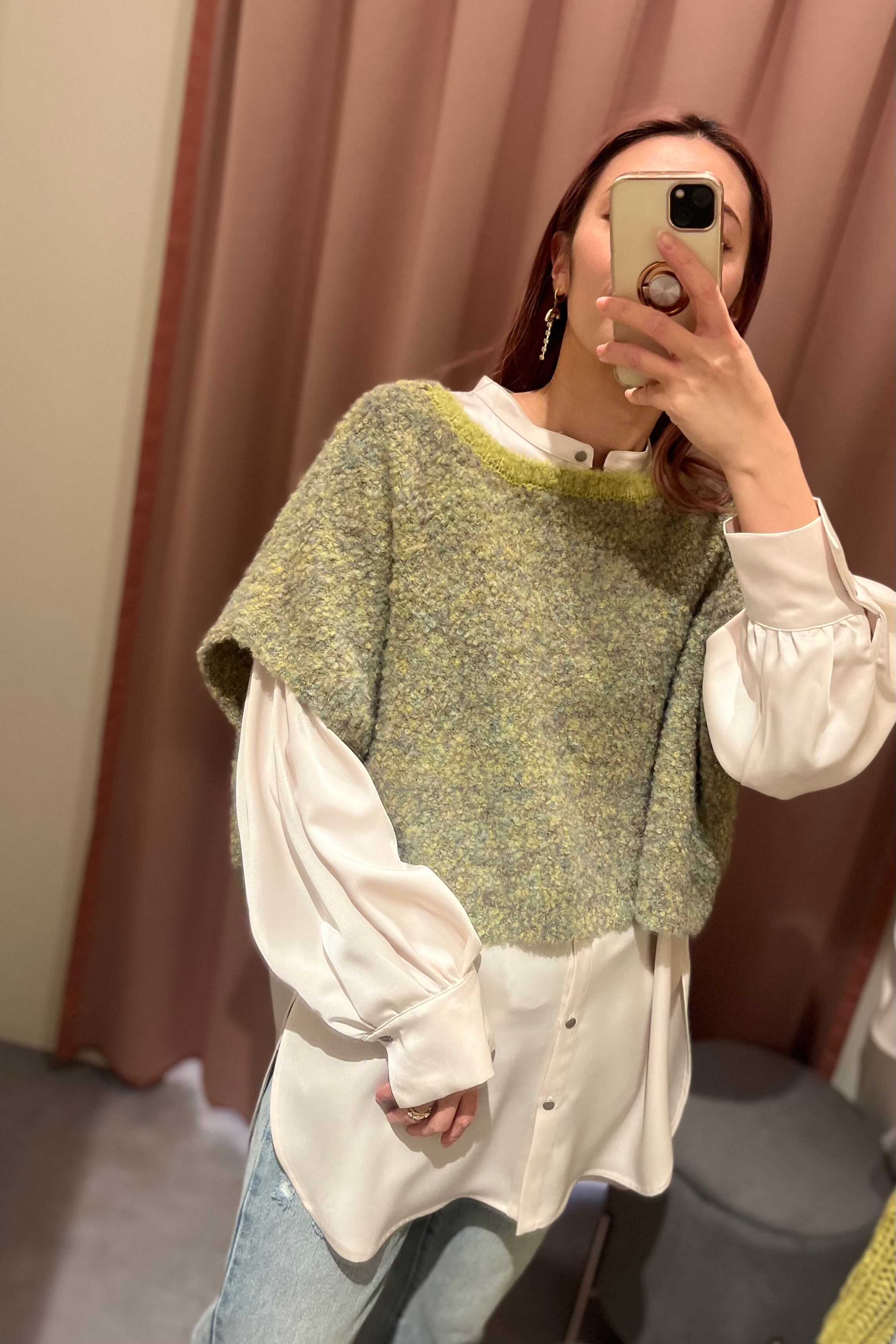 ループニットのベストは、前後どちらでも使える2way。