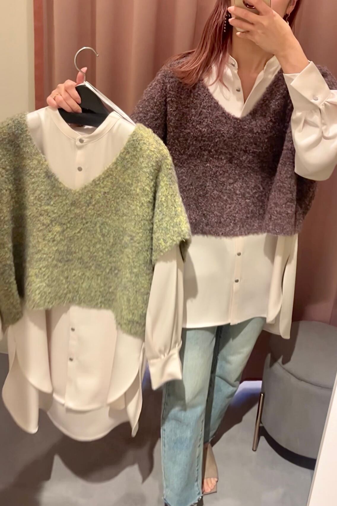 春先まで着たい、淡色ニット×サテンブラウスのsetアイテム*