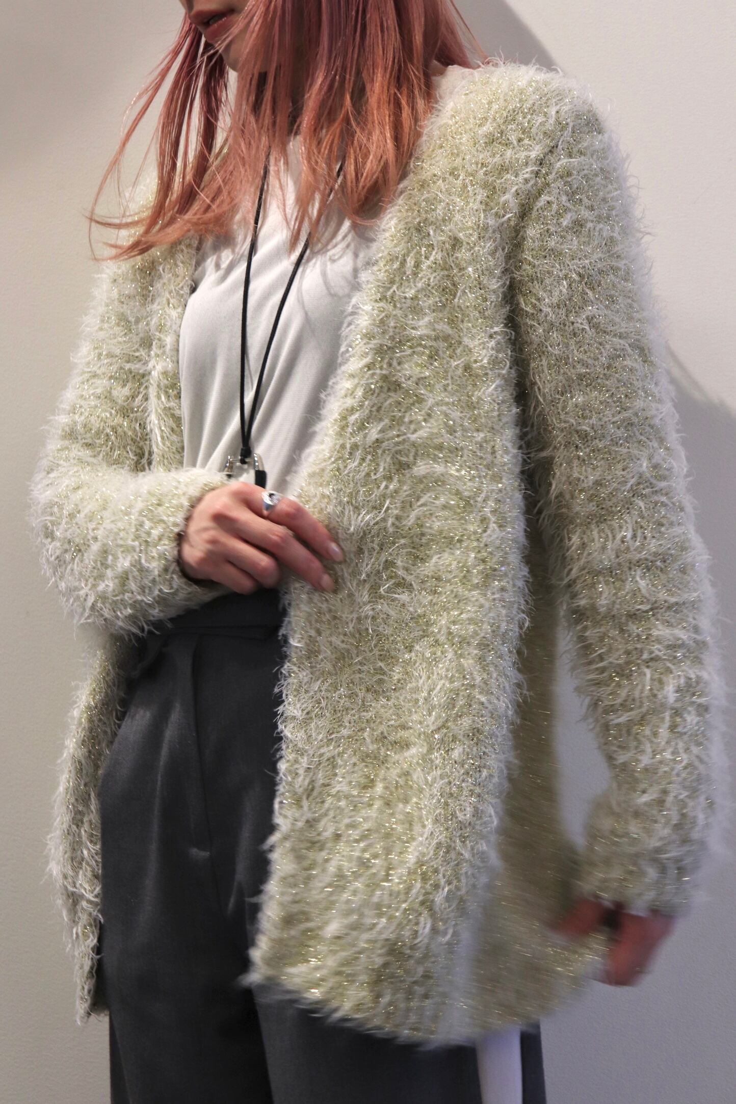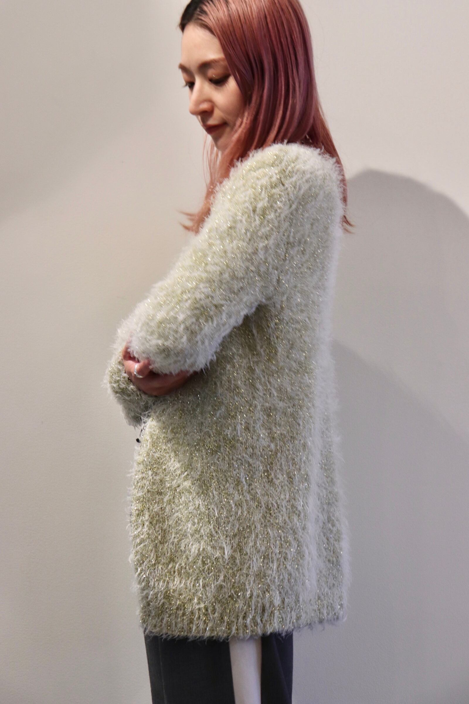 ゴールドのラメ糸に、ホワイトのシャギーが