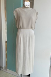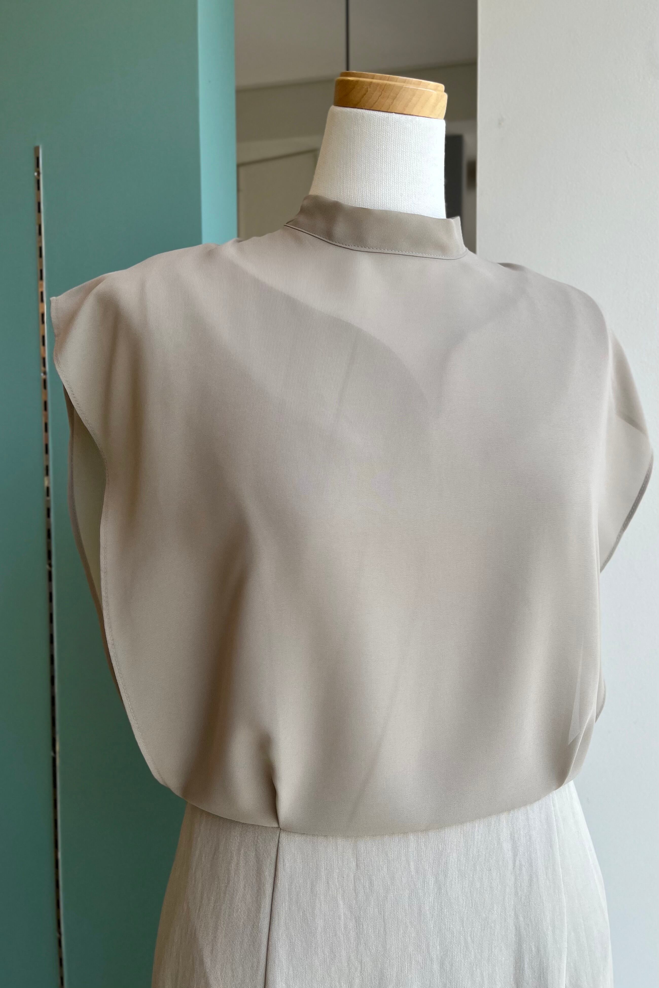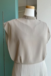 ハイネック×上半身をふんわりカバーしてくれるシフォンのデザインが素敵な1枚。
