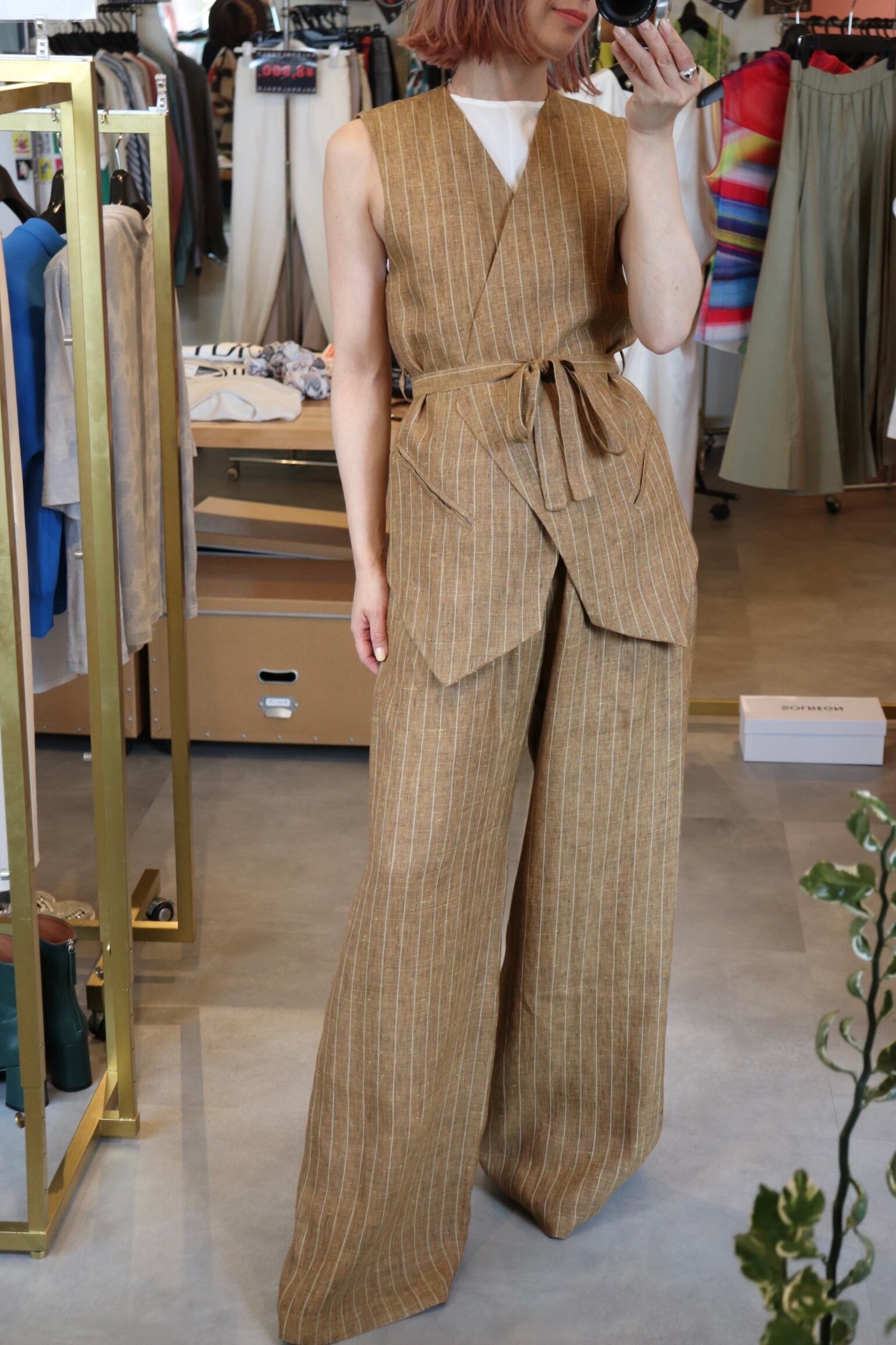 Stripe linen wide pants