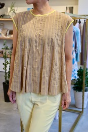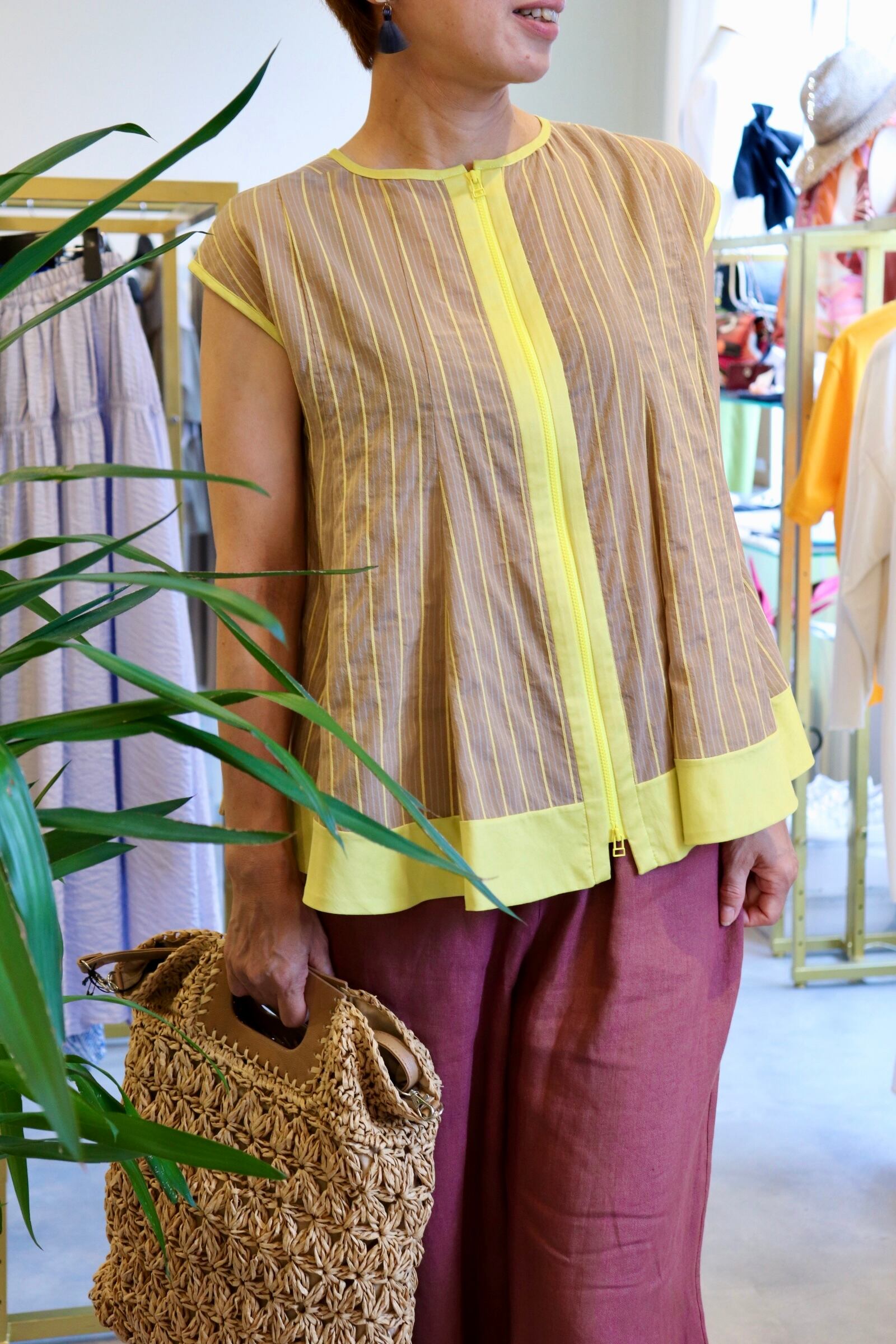 リネンのようなシャリ感のあるストライプ生地は、着心地もさらっとして涼しく着ていただけます◎
