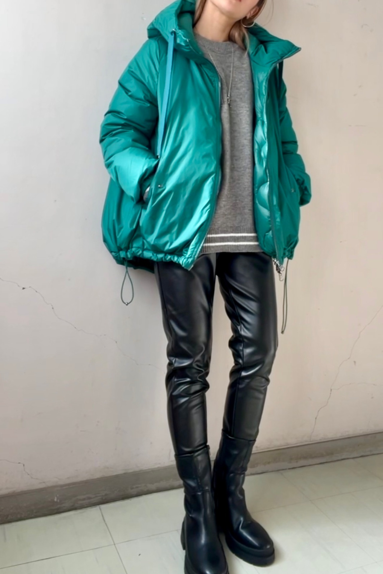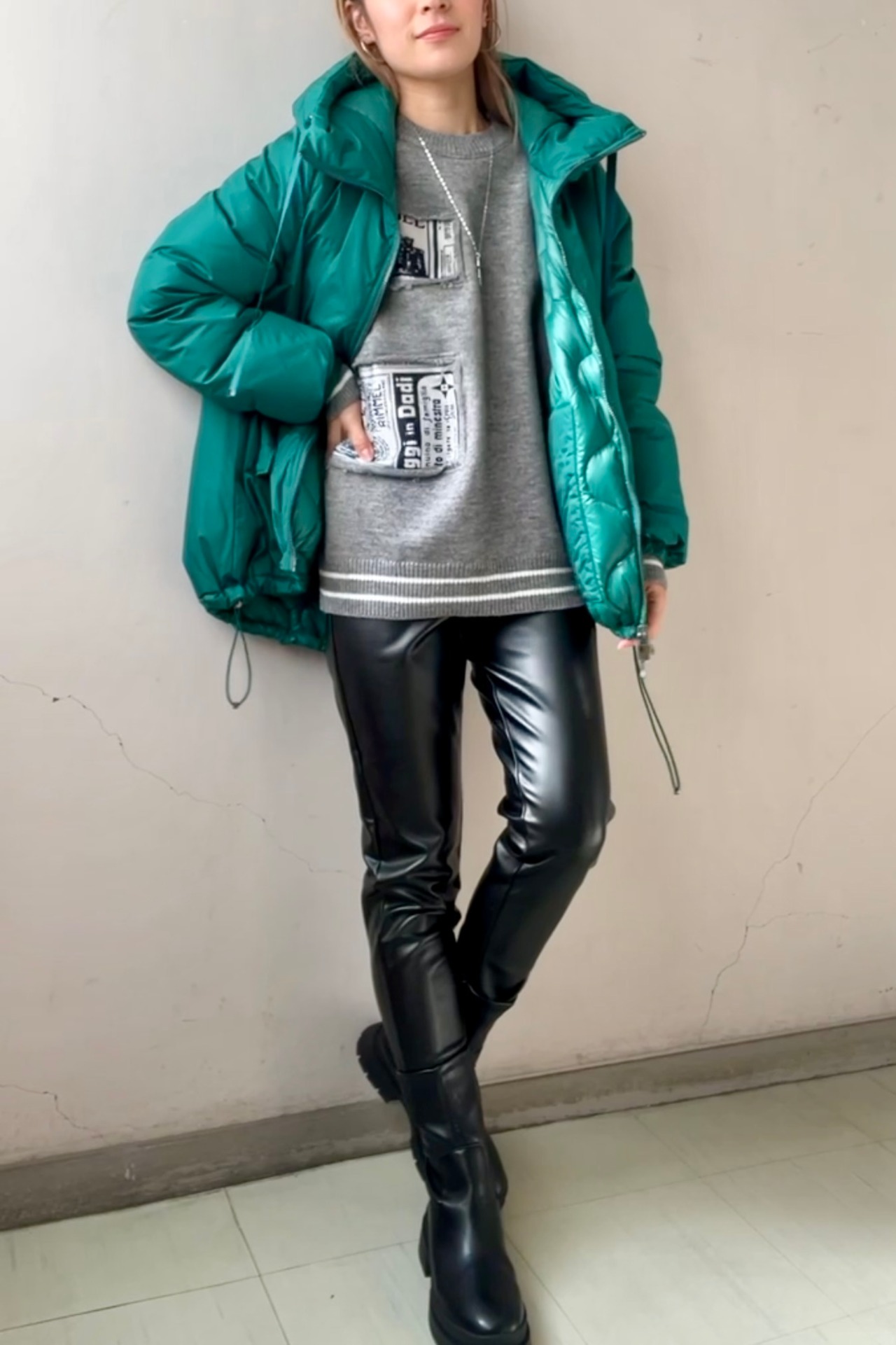 伸縮性のあるフェイクレザーのトレンカレギンス。